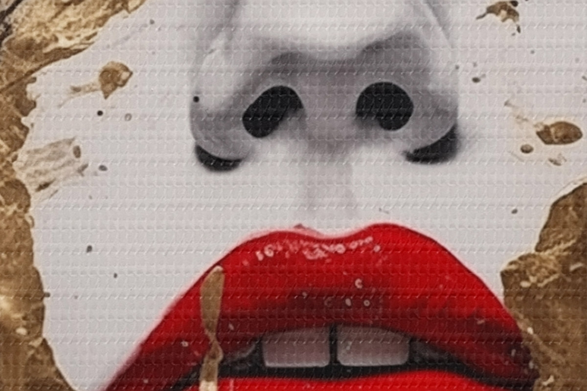 Selle lõuendi peenike niidipunus meenutab professionaalse kunstniku lõuendi pinda.