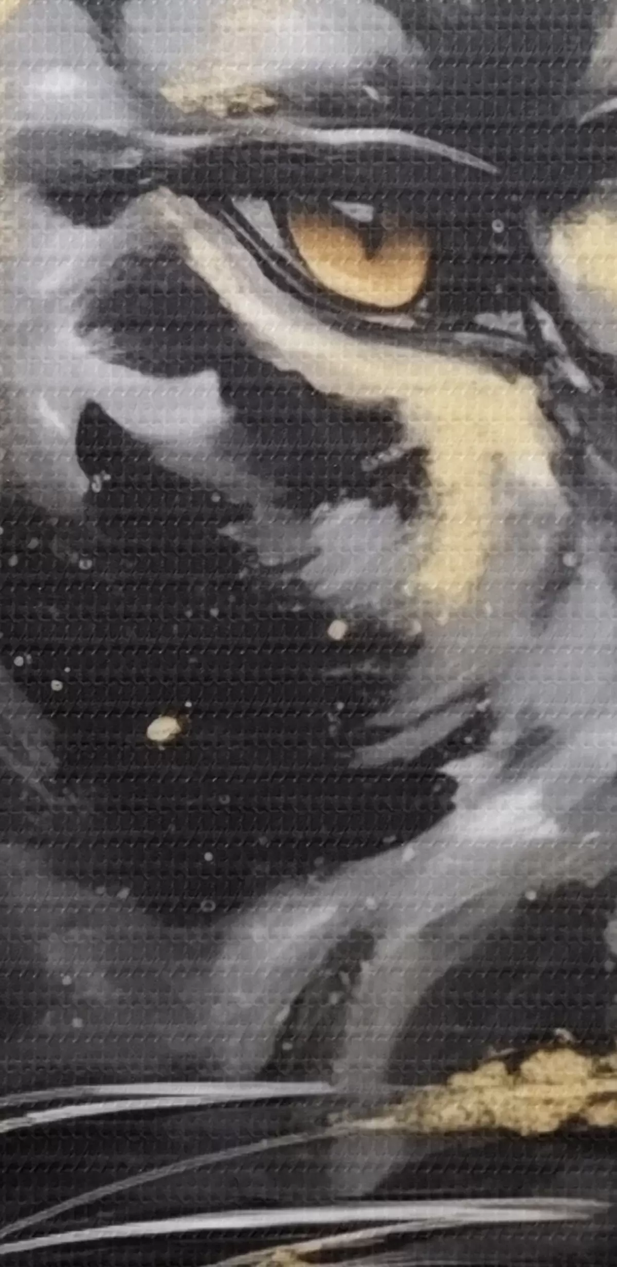 Selle lõuendi peenike niidipunus meenutab professionaalse kunstniku lõuendi pinda.