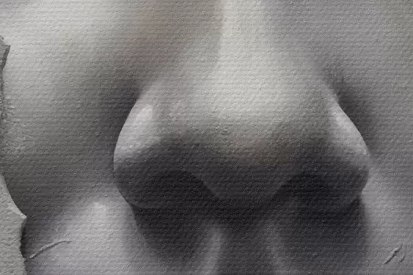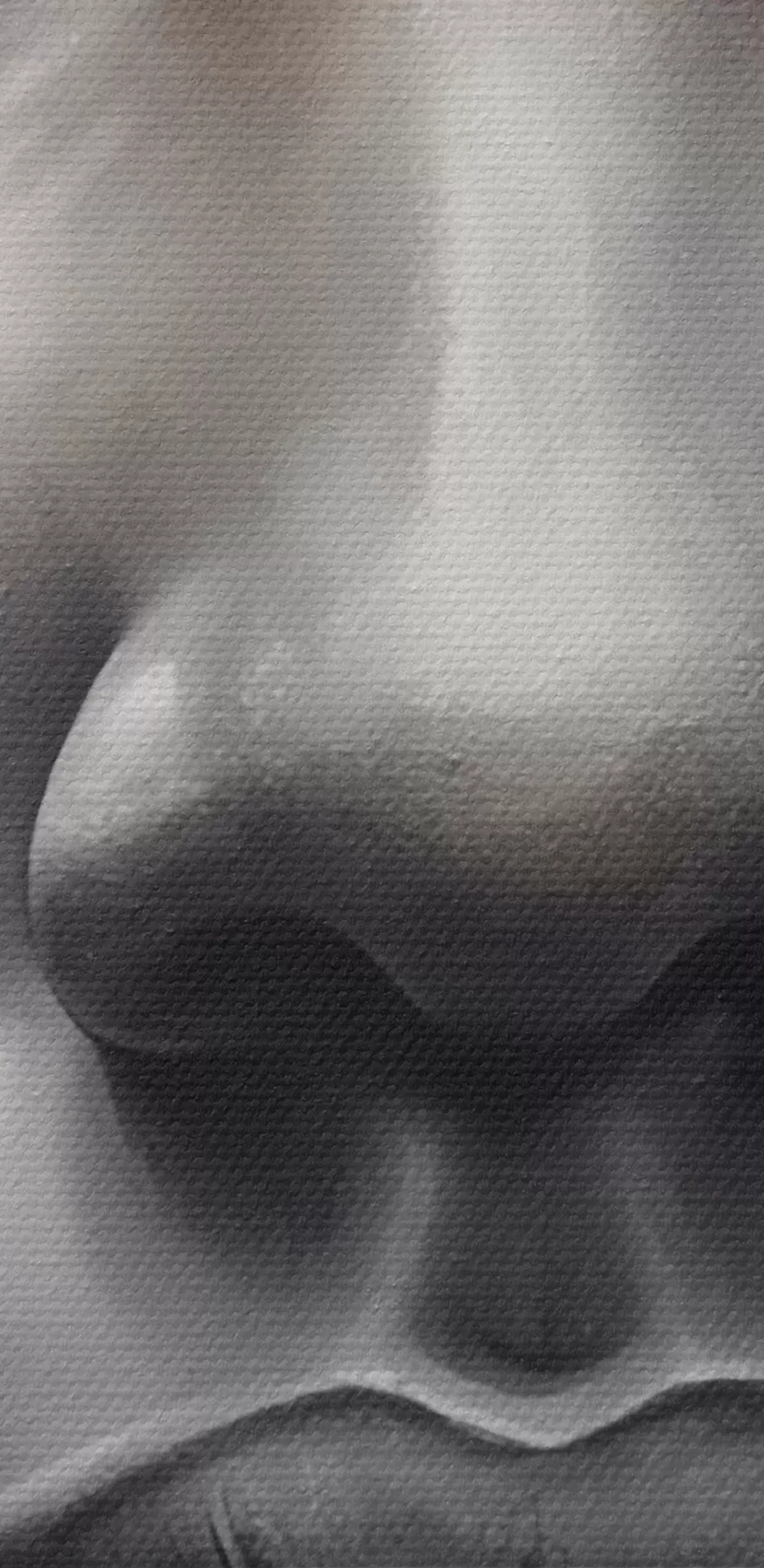 Selle lõuendi peenike niidipunus meenutab professionaalse kunstniku lõuendi pinda.