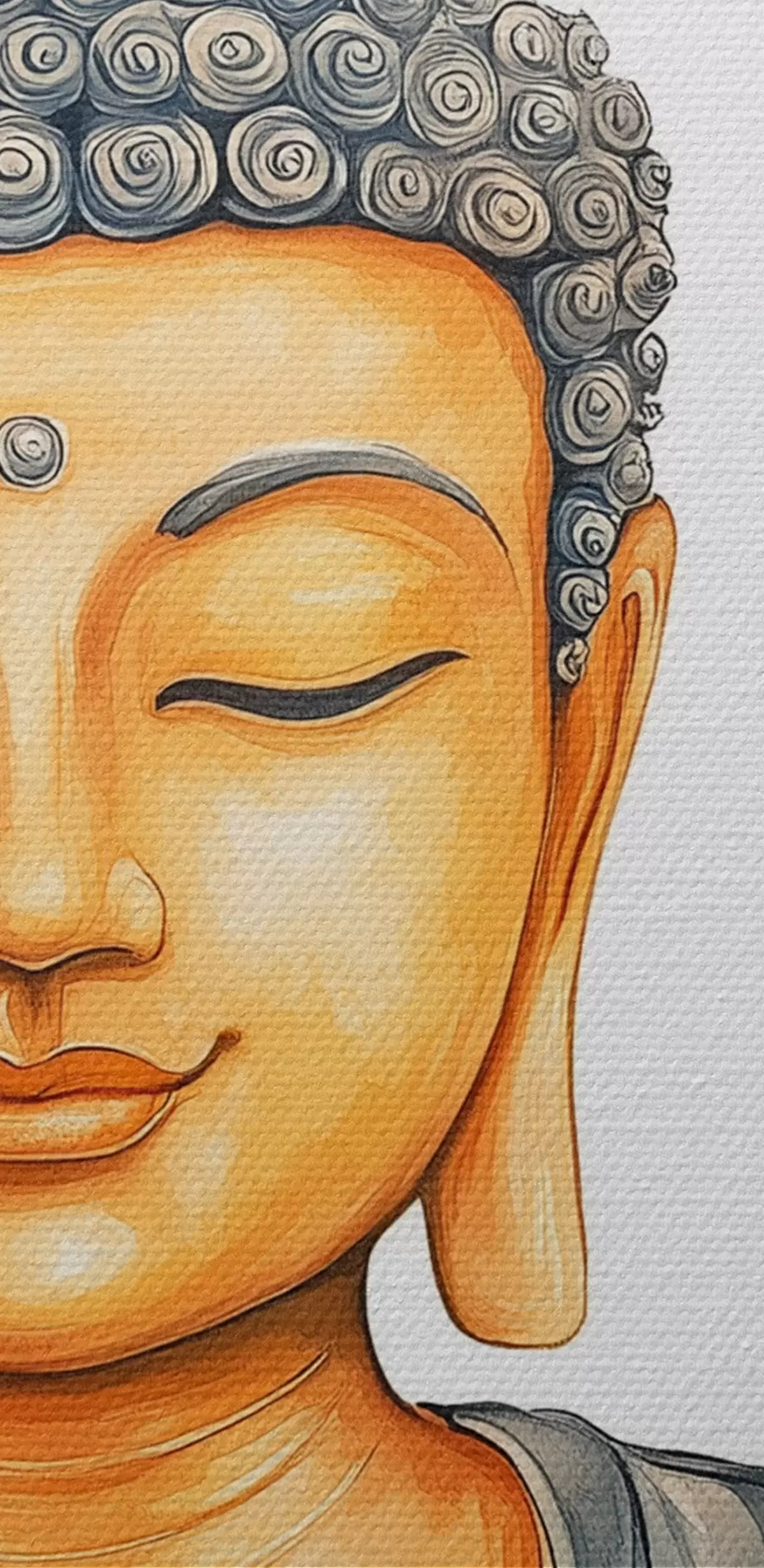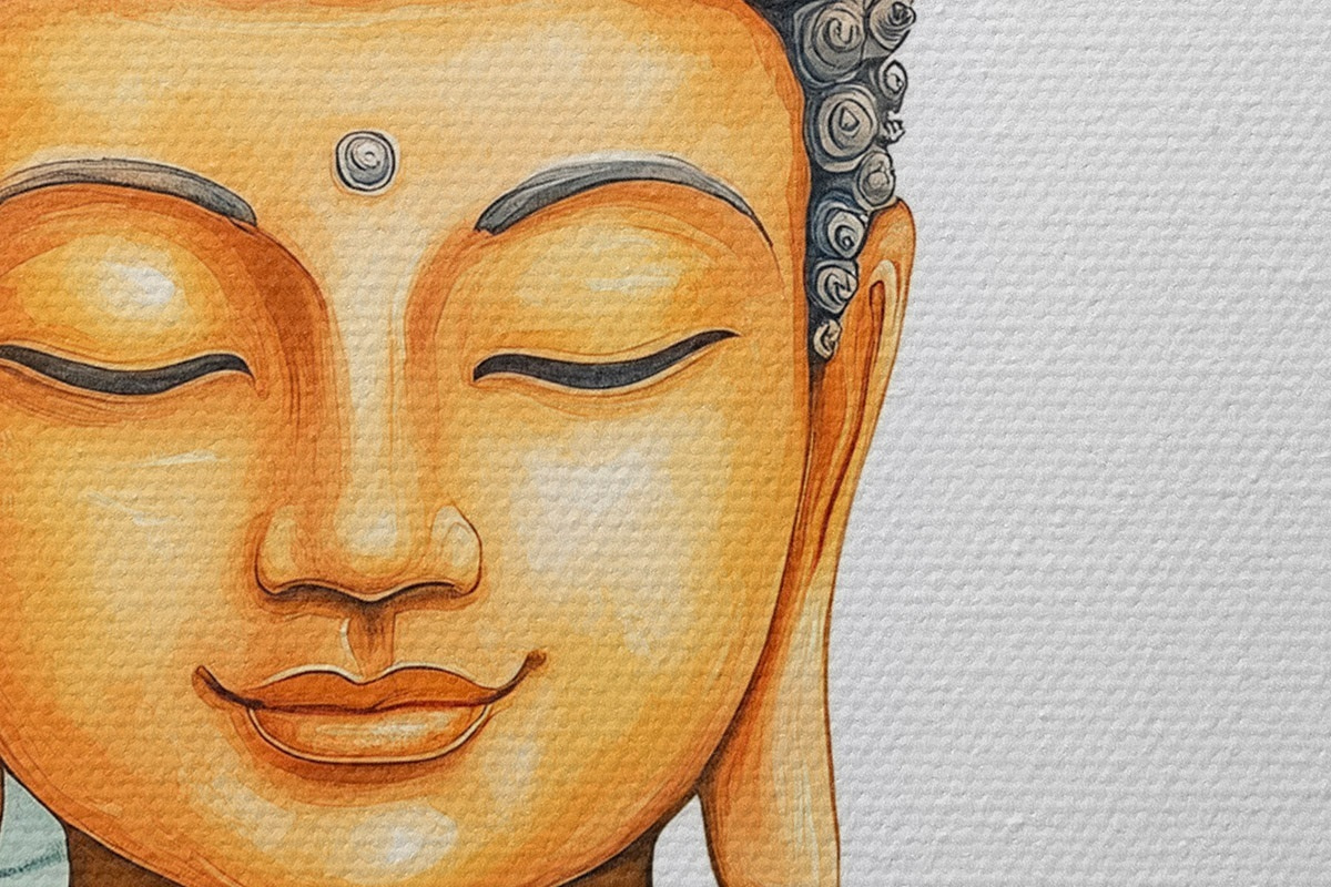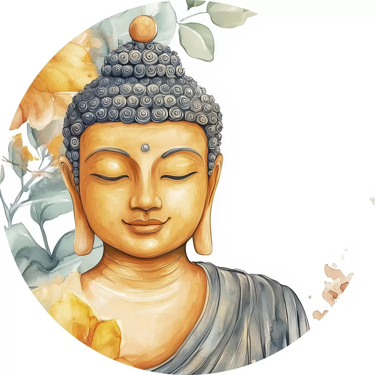 Pilt Buddha ümbritsetud oranžide lilledega, akvarellstiilis Nr r44508