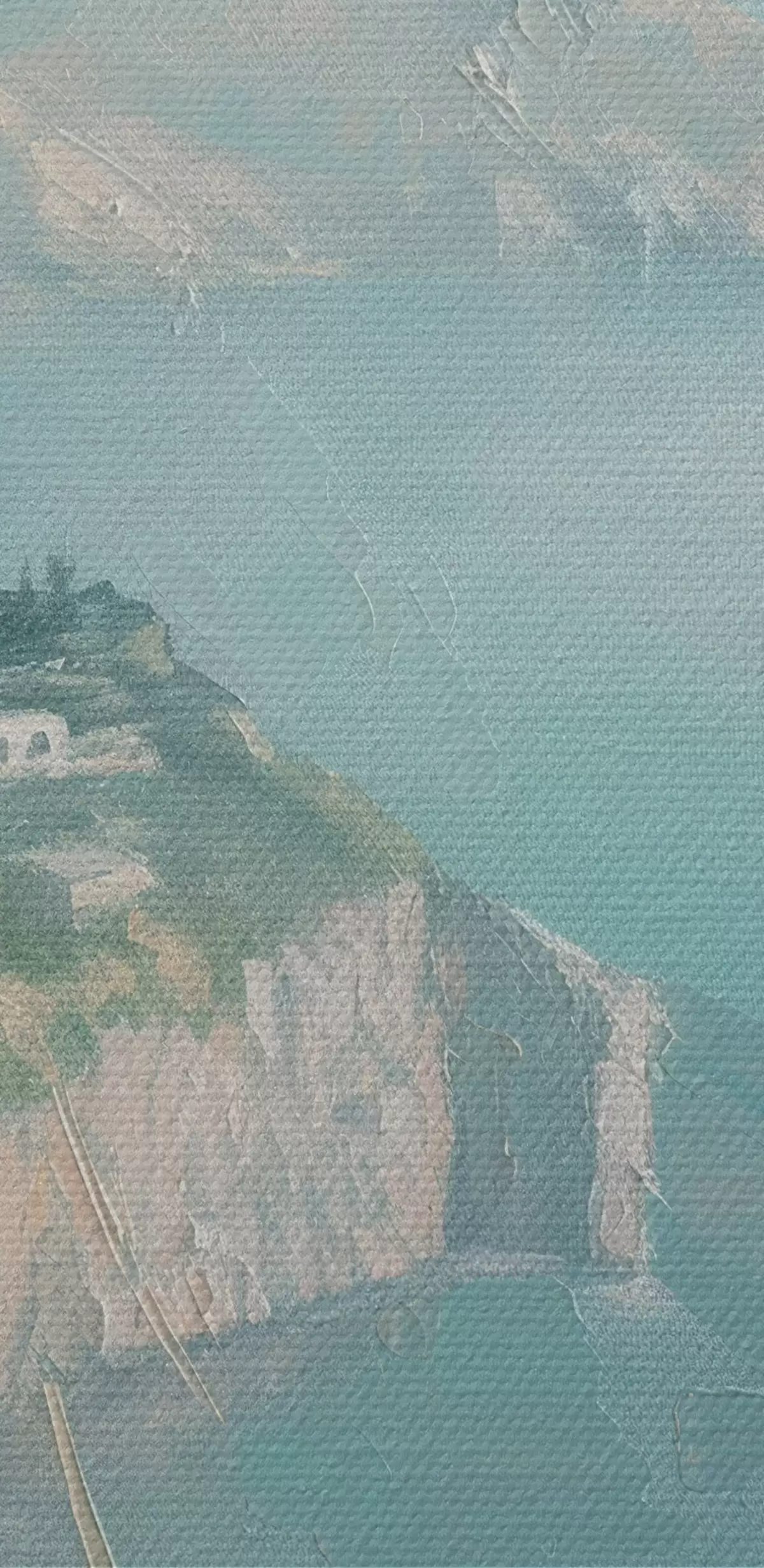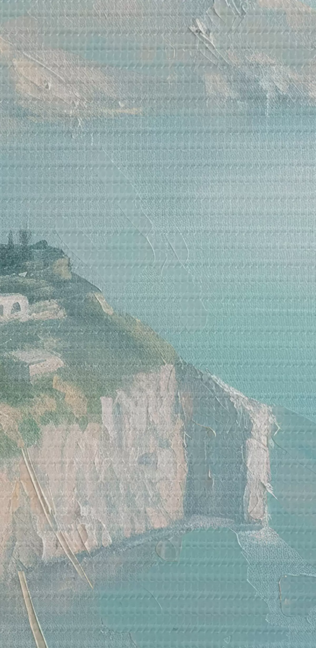 Selle lõuendi peenike niidipunus meenutab professionaalse kunstniku lõuendi pinda.