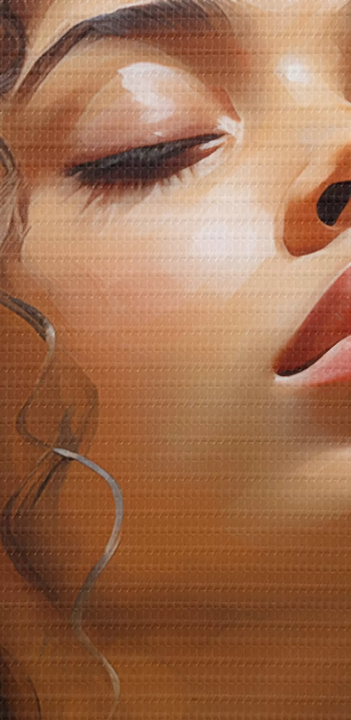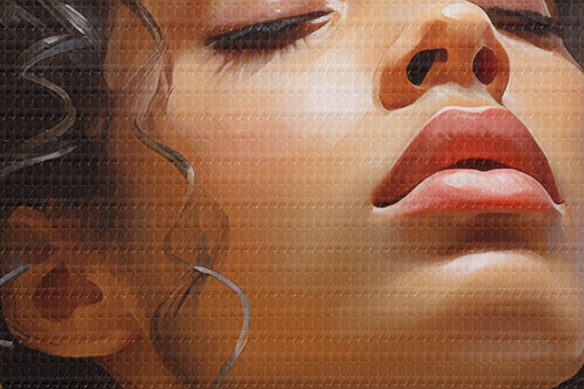 Selle lõuendi peenike niidipunus meenutab professionaalse kunstniku lõuendi pinda.
