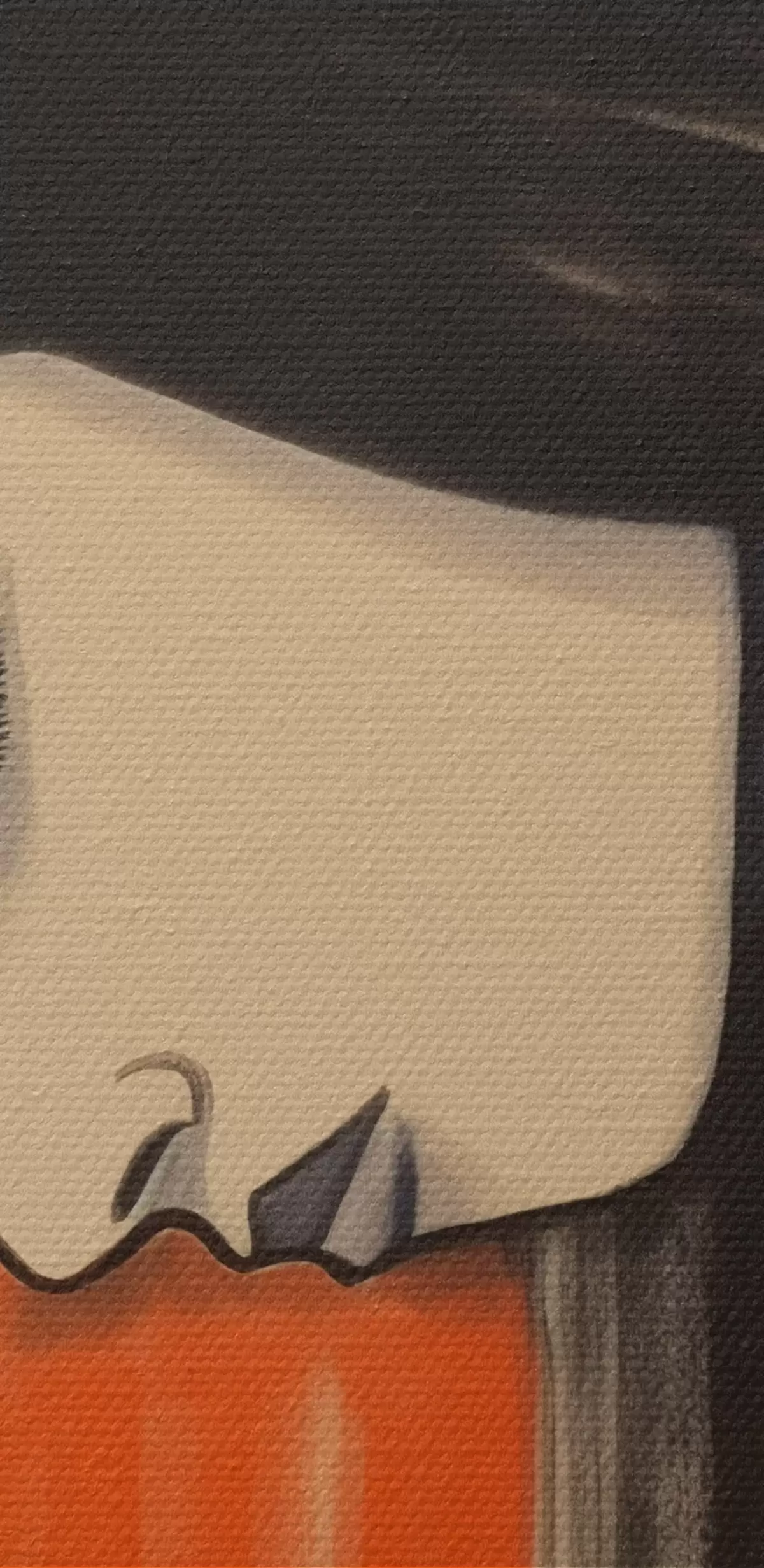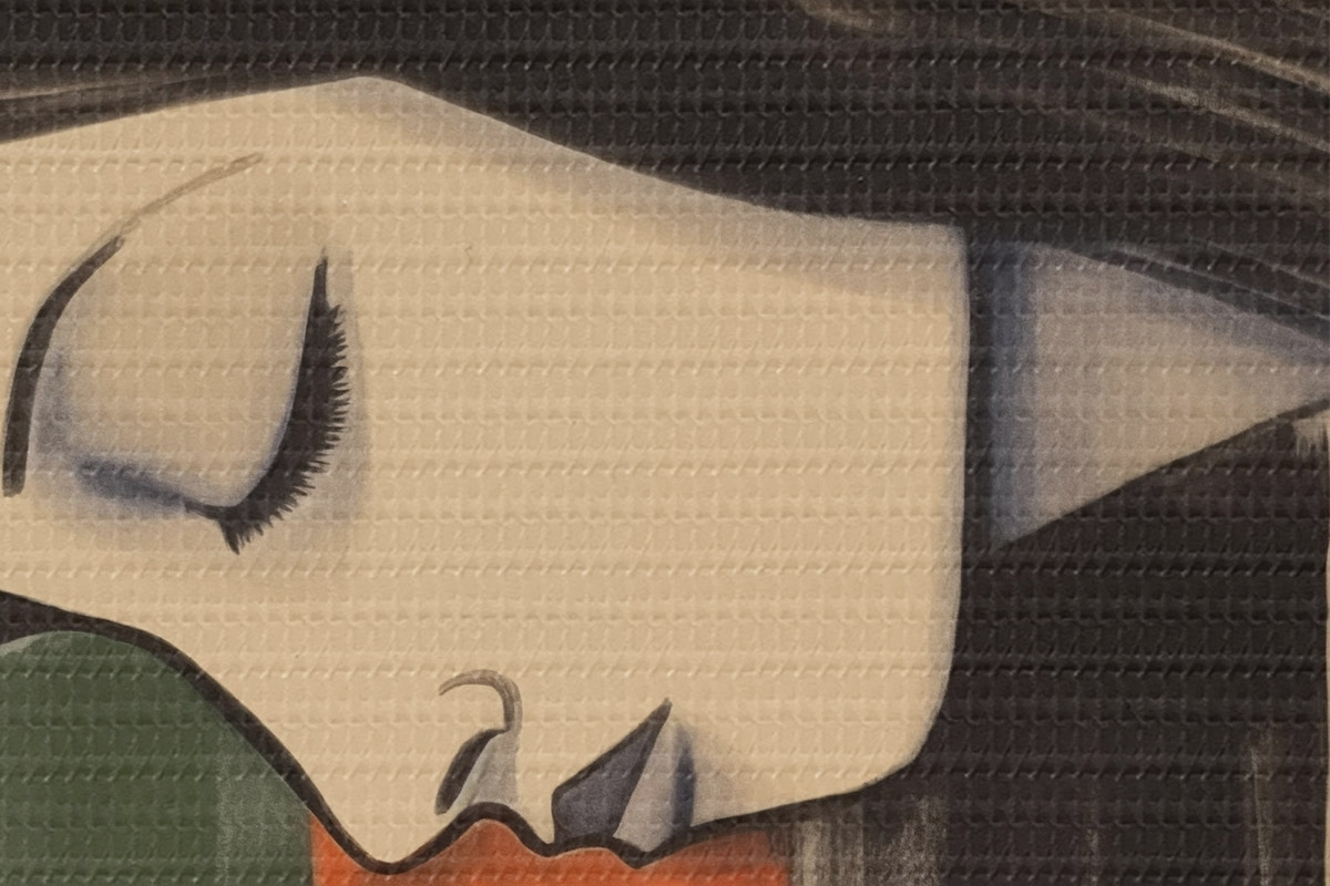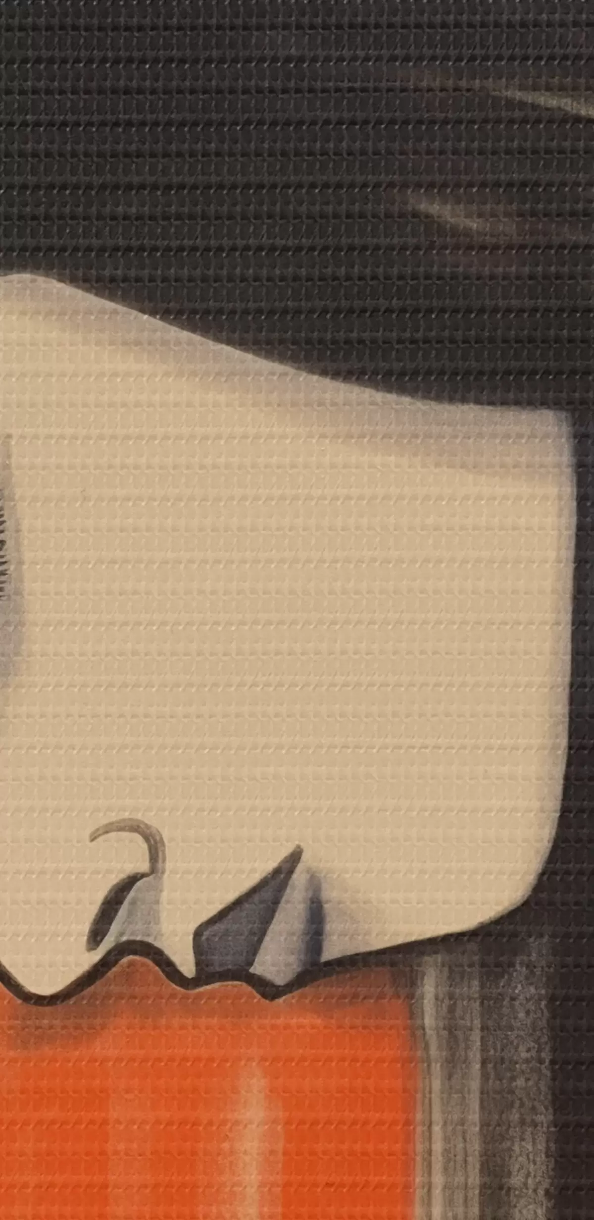 Selle lõuendi peenike niidipunus meenutab professionaalse kunstniku lõuendi pinda.
