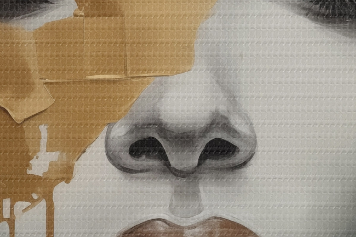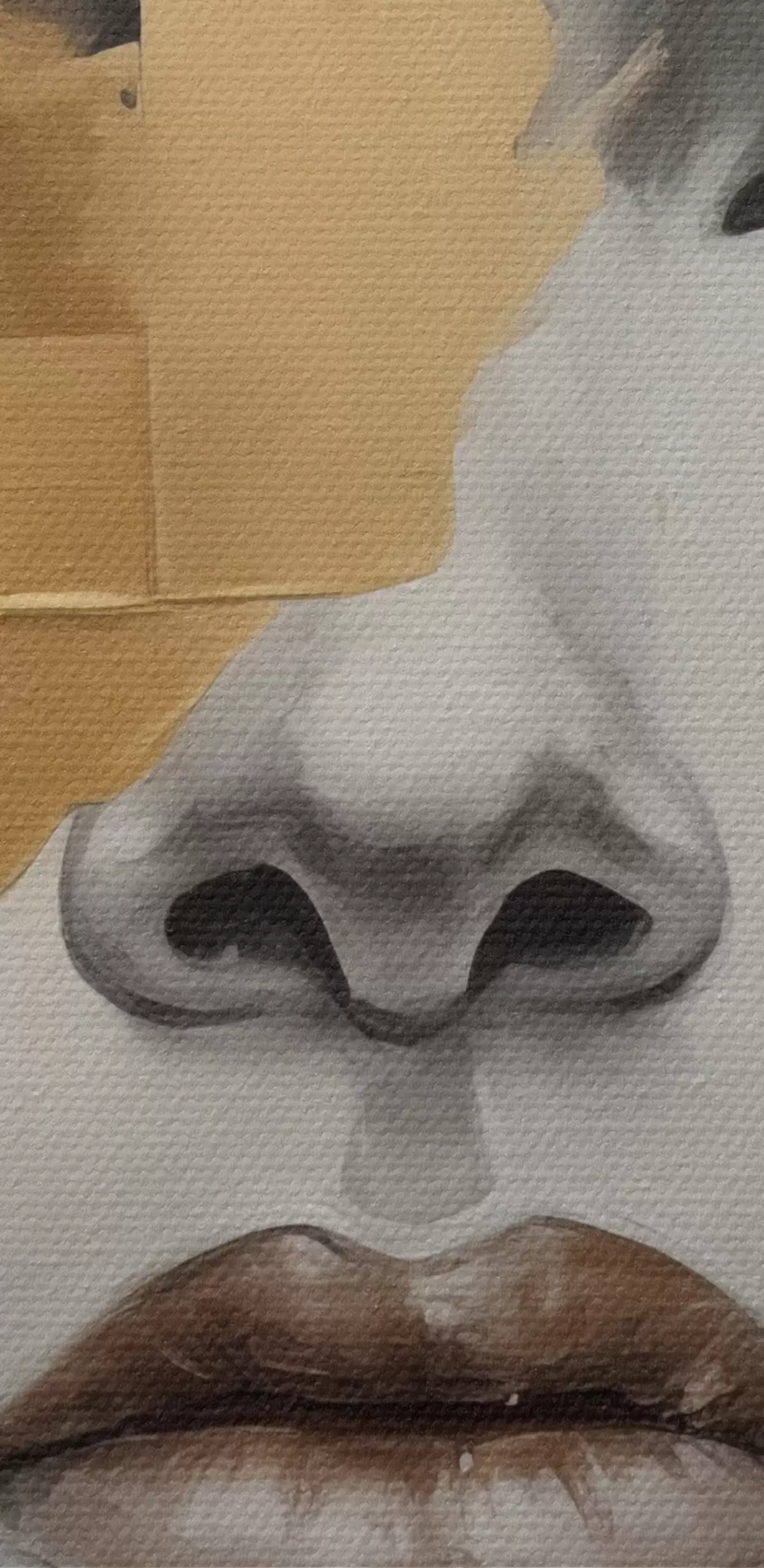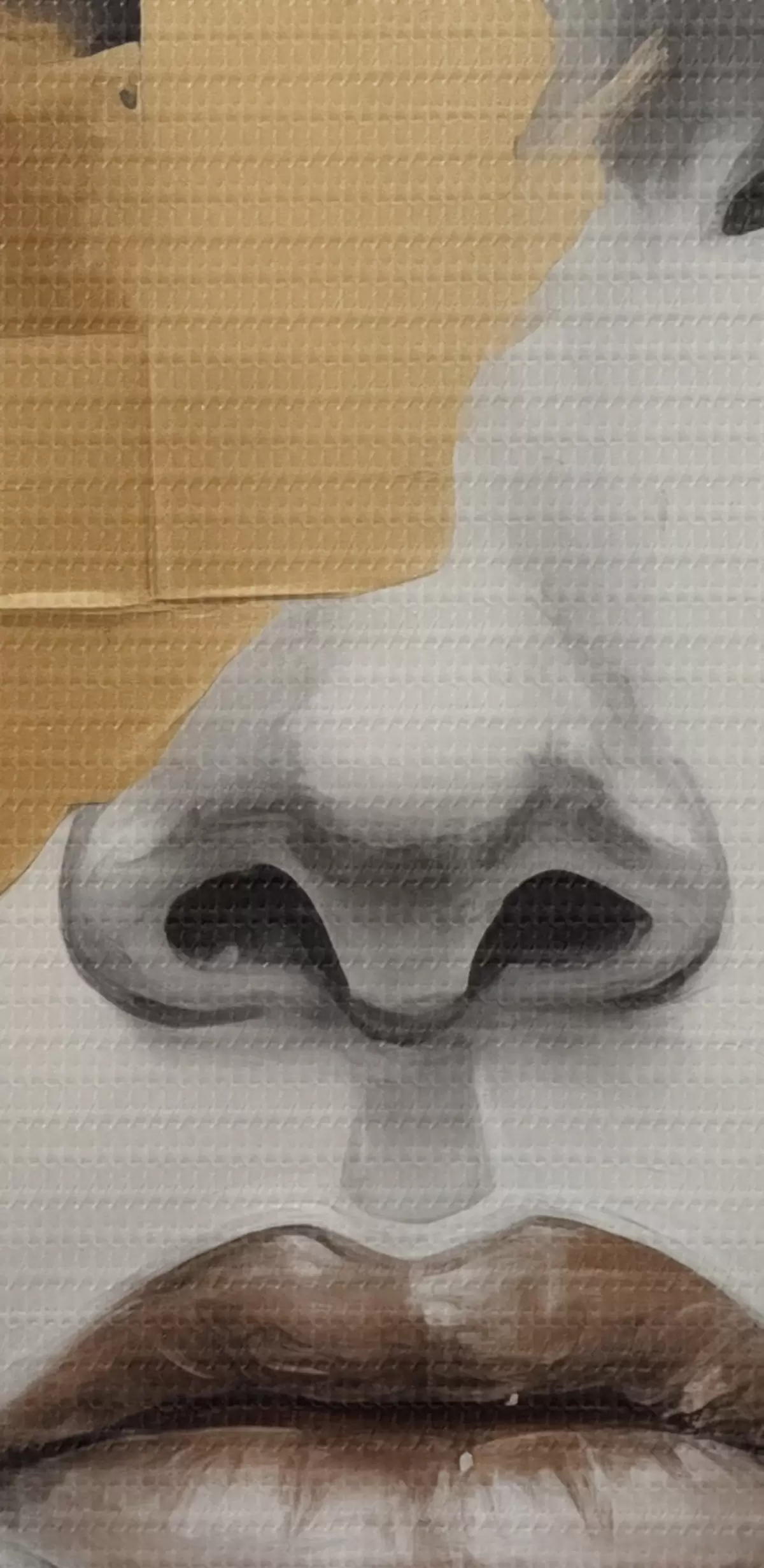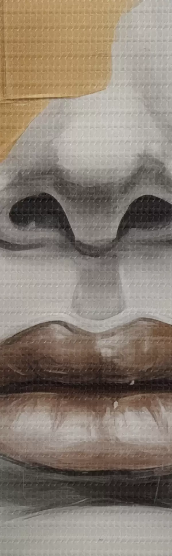 Selle lõuendi peenike niidipunus meenutab professionaalse kunstniku lõuendi pinda.
