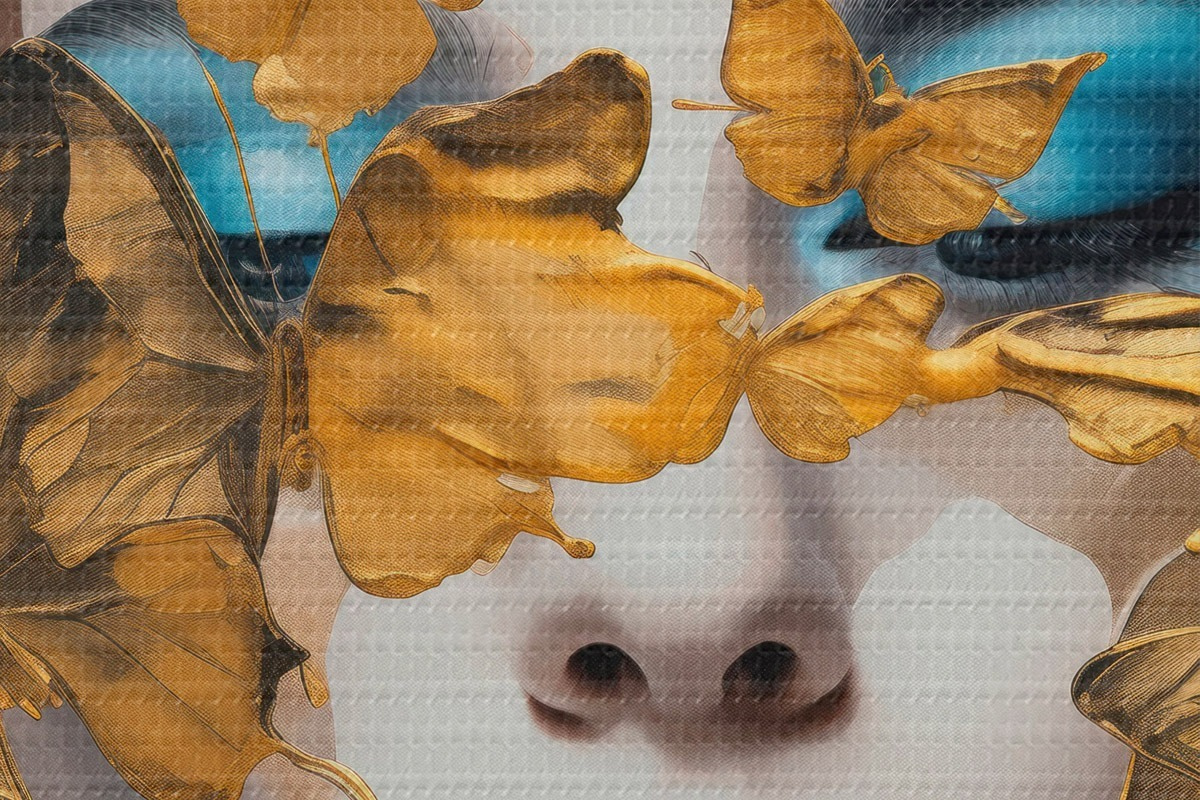 Selle lõuendi peenike niidipunus meenutab professionaalse kunstniku lõuendi pinda.