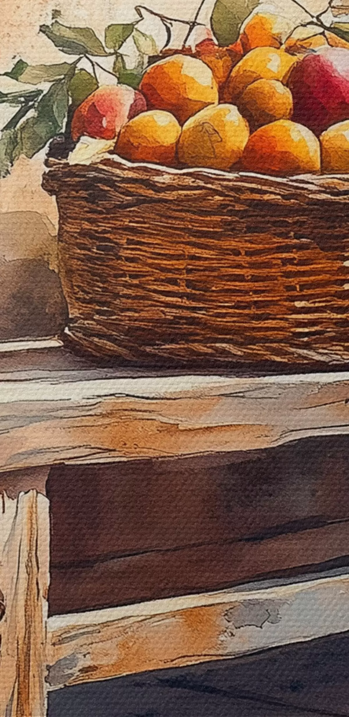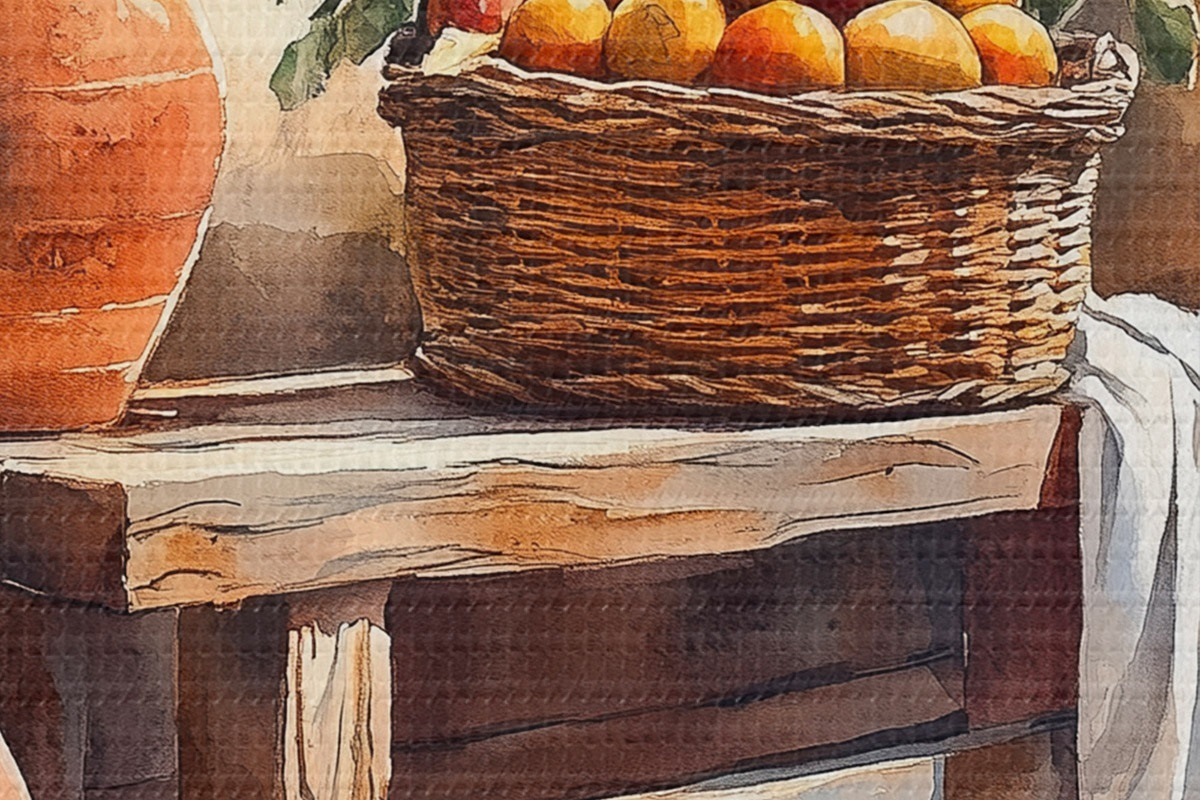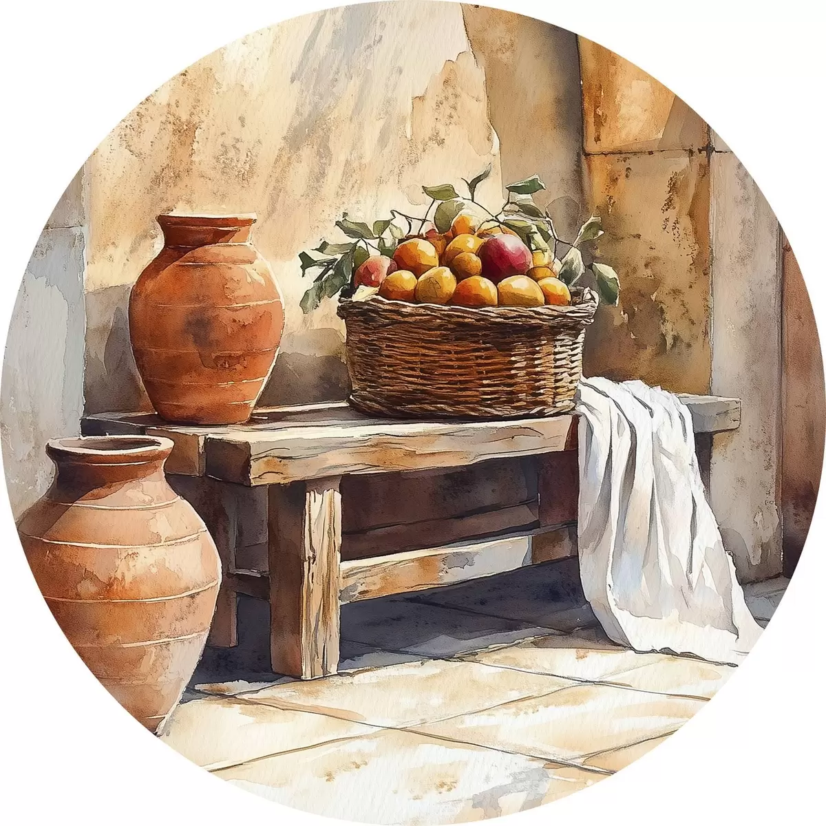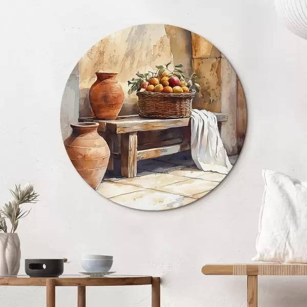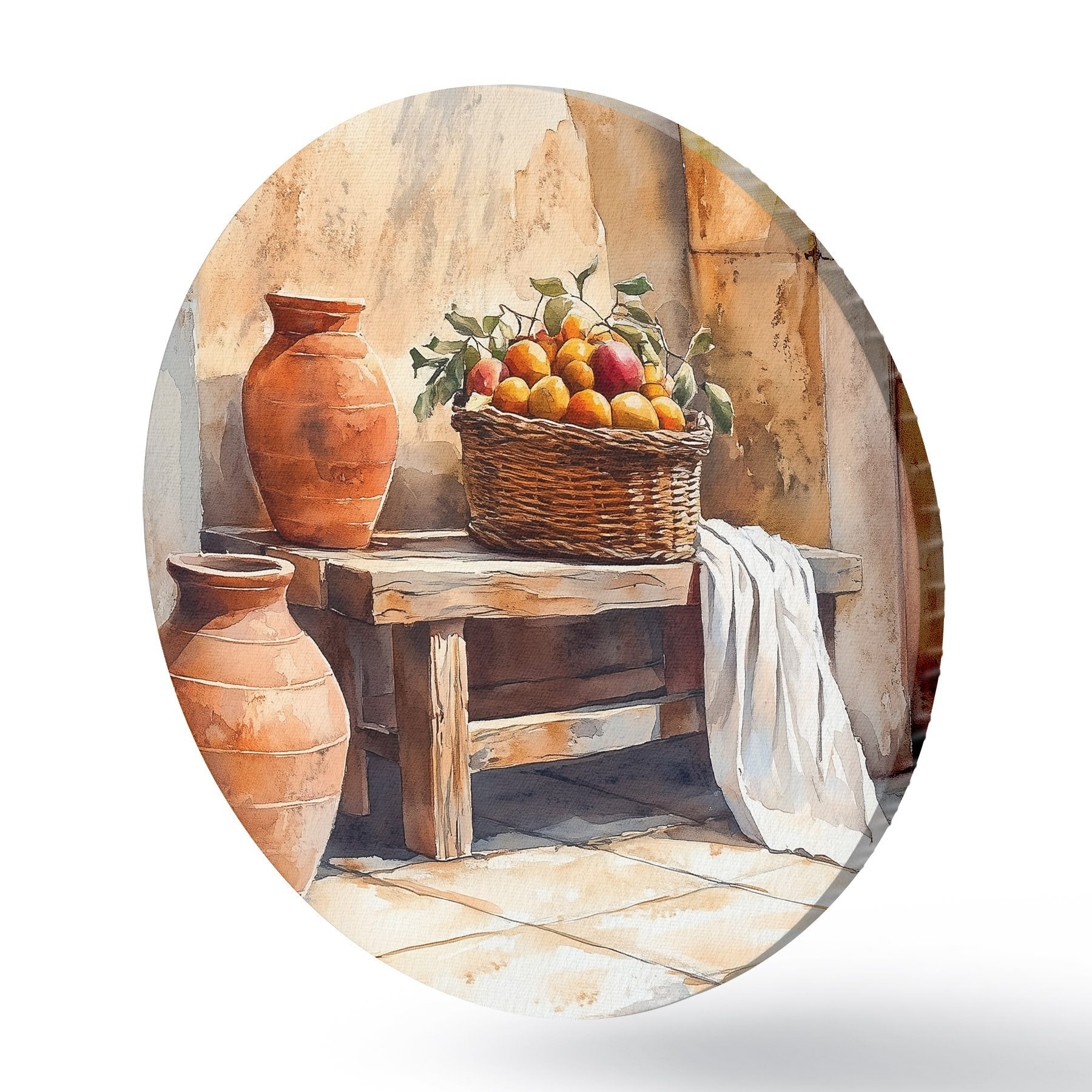 Pilt Esteetilised vaasid ja punutud korv apelsinidega, Toscana, rustikaalne stiil Nr r44605