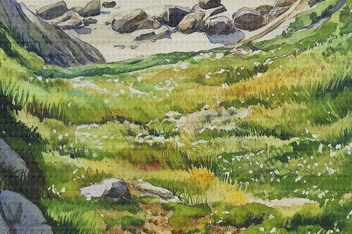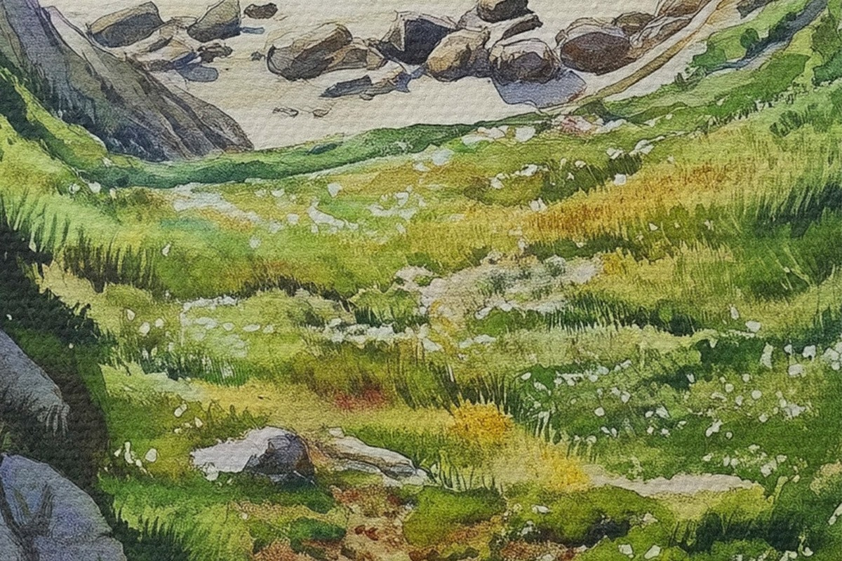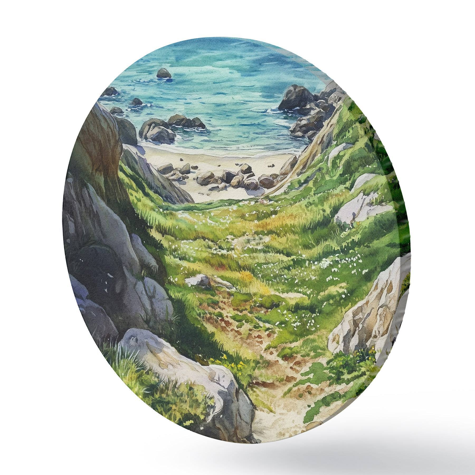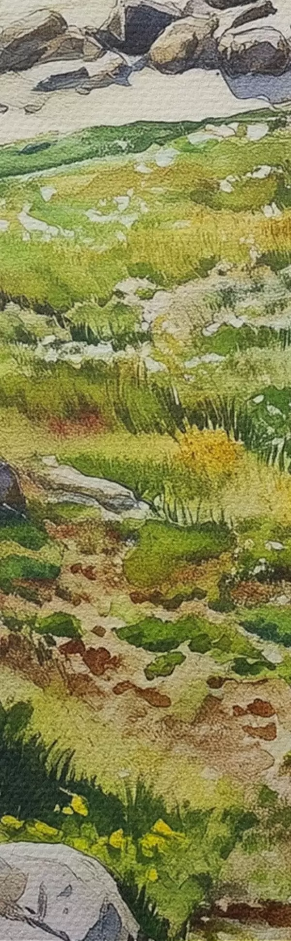 Pilt Mererannik koos kivide ja rohelise rohuga, akvarellstiilis, suvi Nr r44616