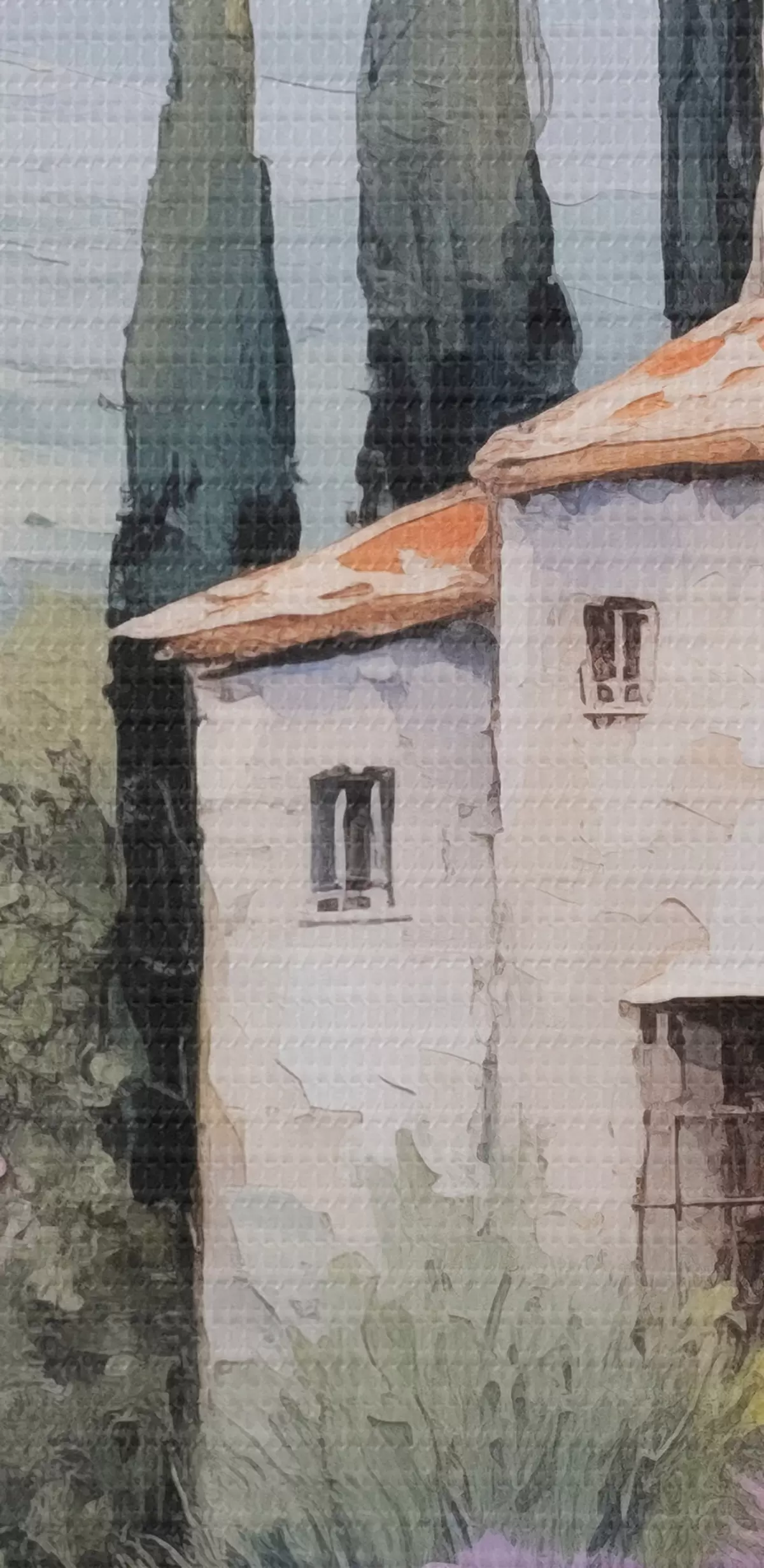 Selle lõuendi peenike niidipunus meenutab professionaalse kunstniku lõuendi pinda.