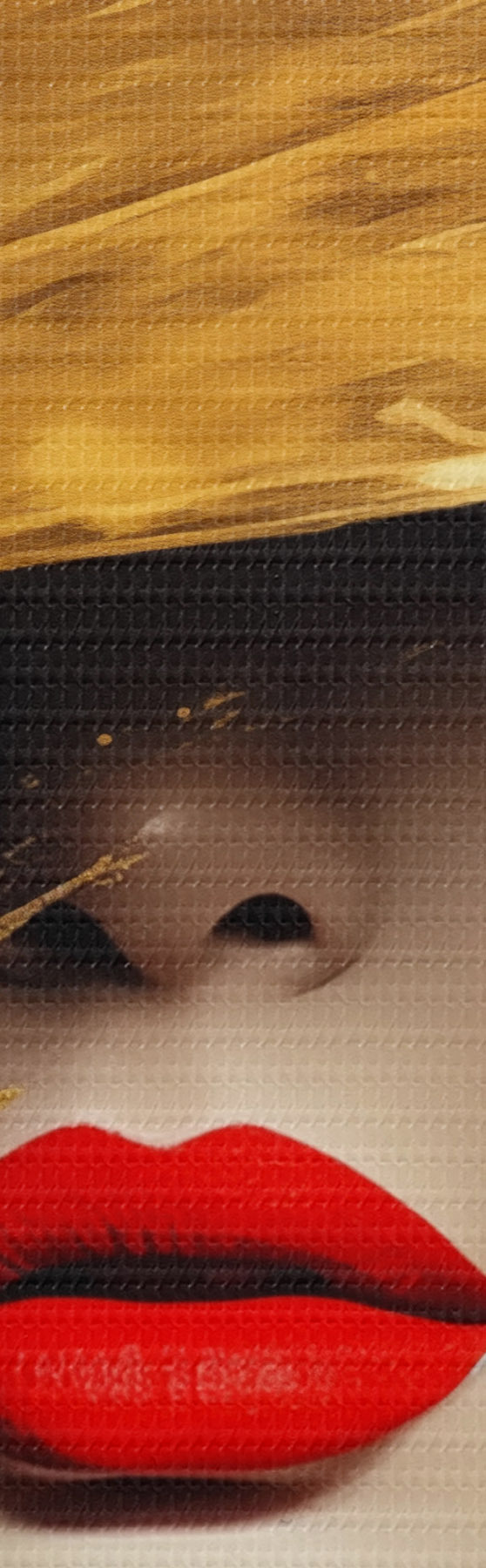 Selle lõuendi peenike niidipunus meenutab professionaalse kunstniku lõuendi pinda.
