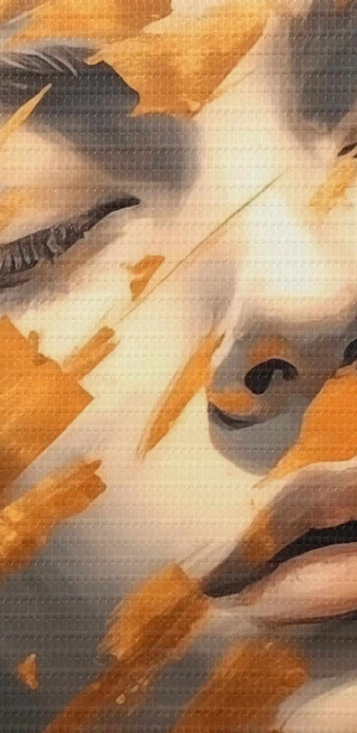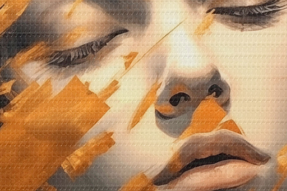 Selle lõuendi peenike niidipunus meenutab professionaalse kunstniku lõuendi pinda.