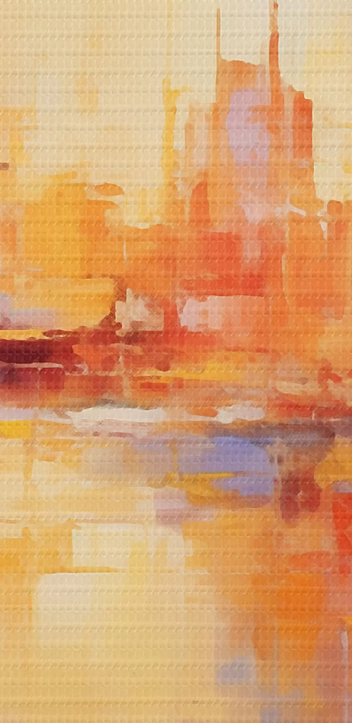 Selle lõuendi peenike niidipunus meenutab professionaalse kunstniku lõuendi pinda.