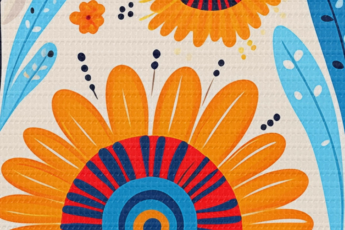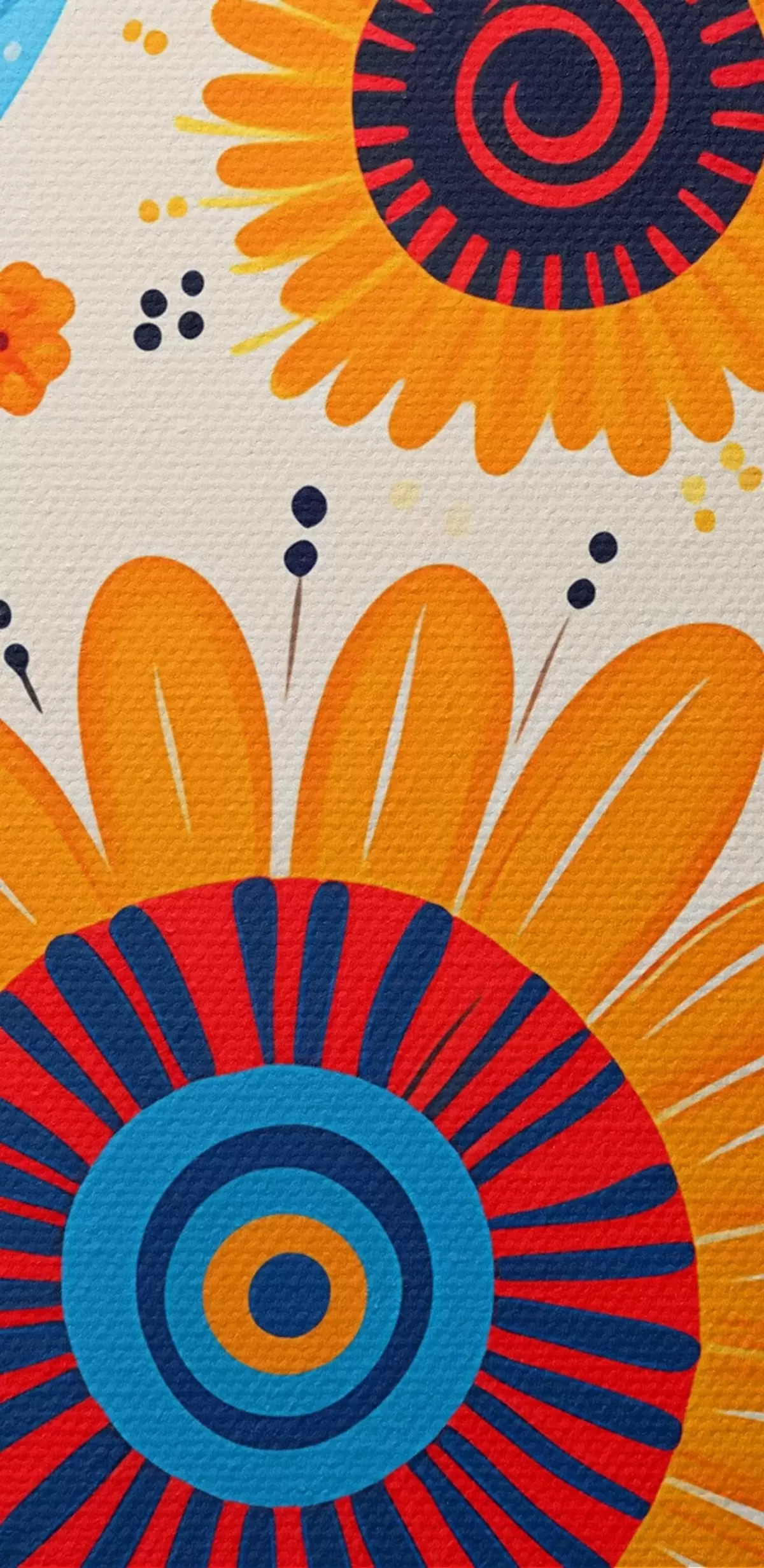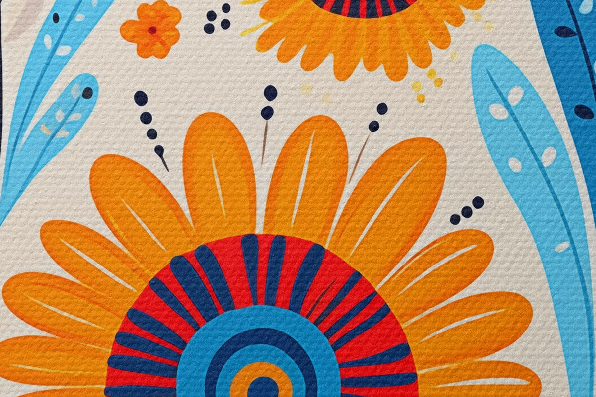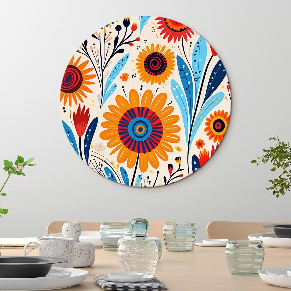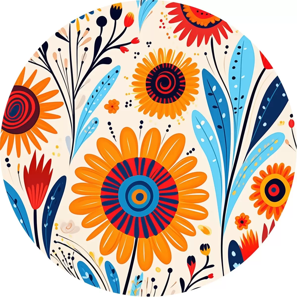 Pilt Stiliseeritud lilled sinise ja oranži värvipaletiga Nr r44761