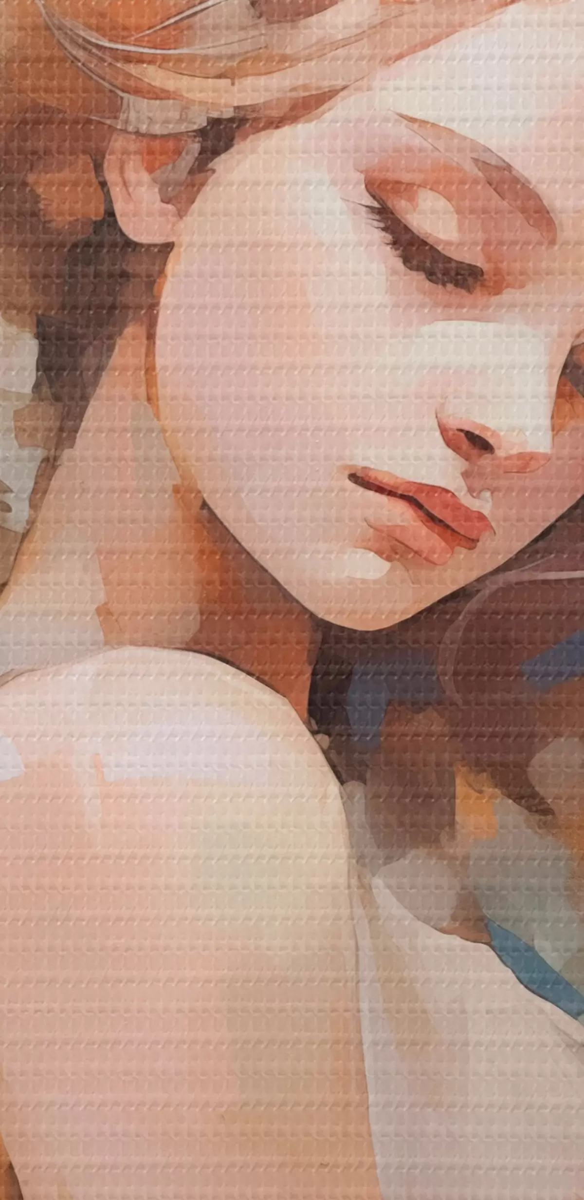 Selle lõuendi peenike niidipunus meenutab professionaalse kunstniku lõuendi pinda.