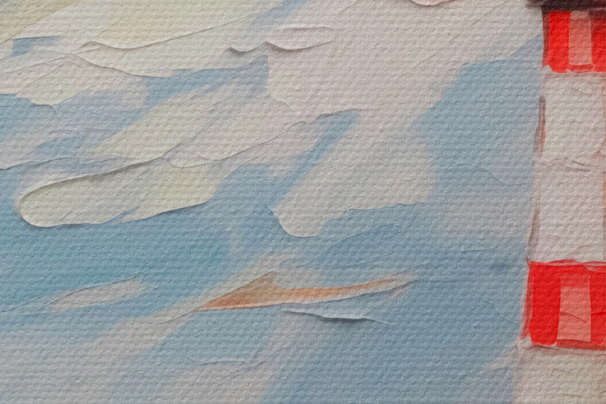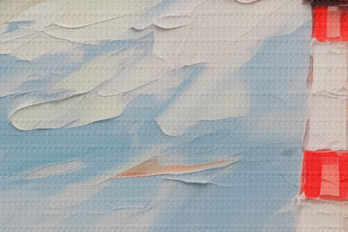 Selle lõuendi peenike niidipunus meenutab professionaalse kunstniku lõuendi pinda.
