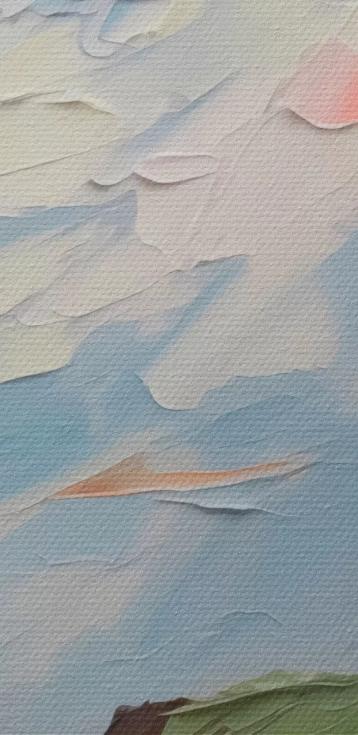 Maali võib riputada kohe pärast selle kättesaamist. Maal on pingutatud 2 cm laiusele puidust kandikule.