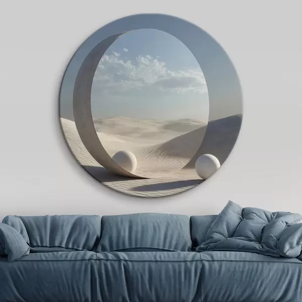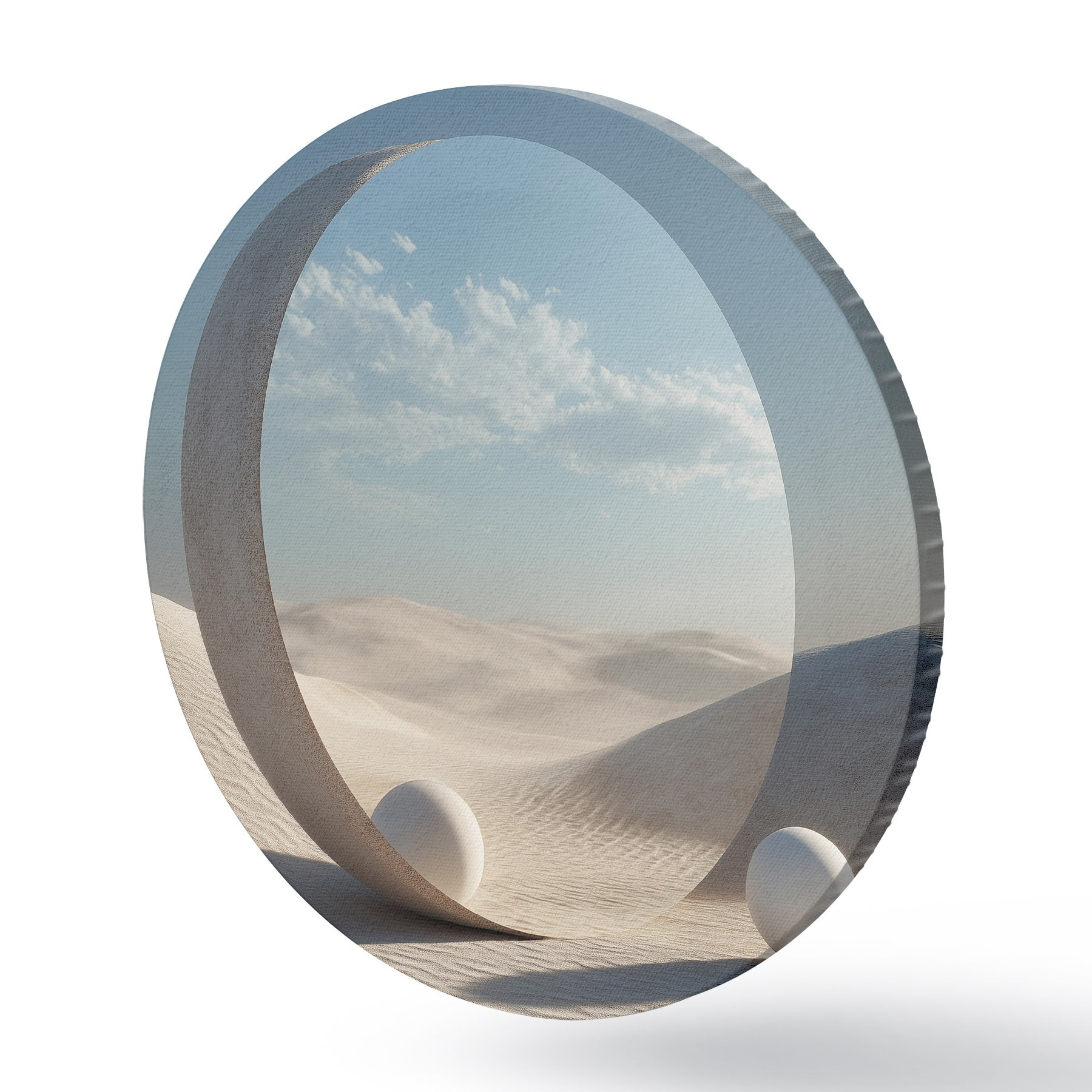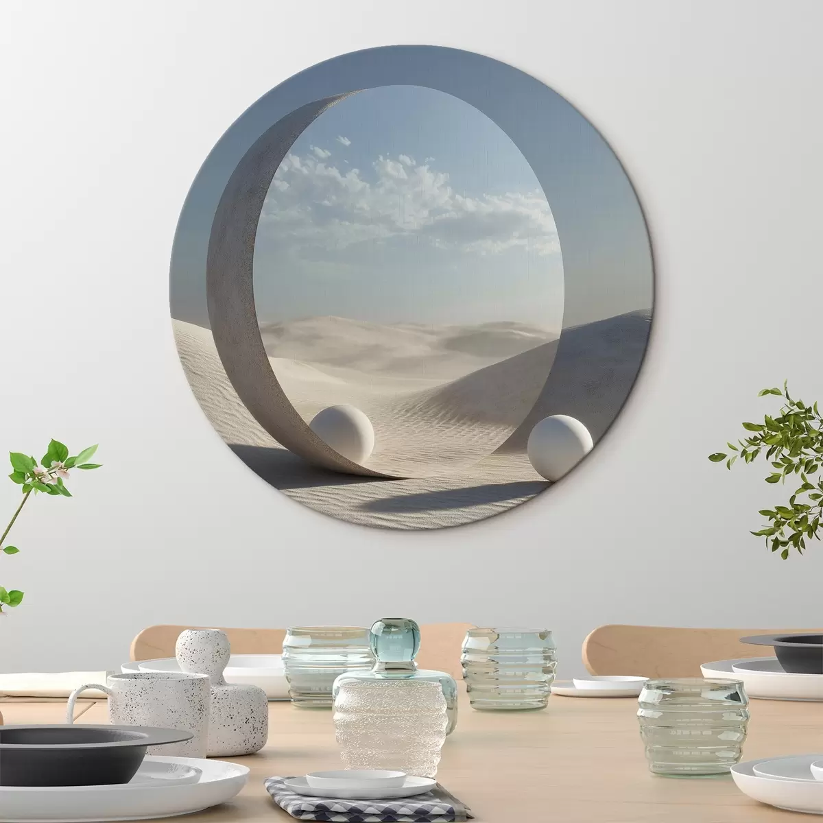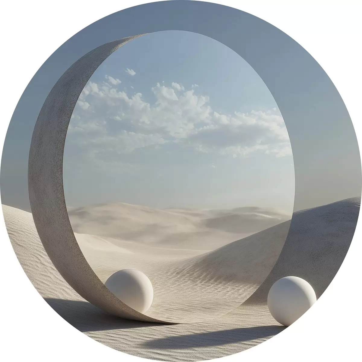 Pilt Sürrealistlik kõrbemaastik, kus ümmargune peegel peegeldab taevast ja kuud Nr r44792