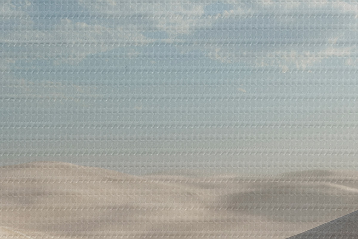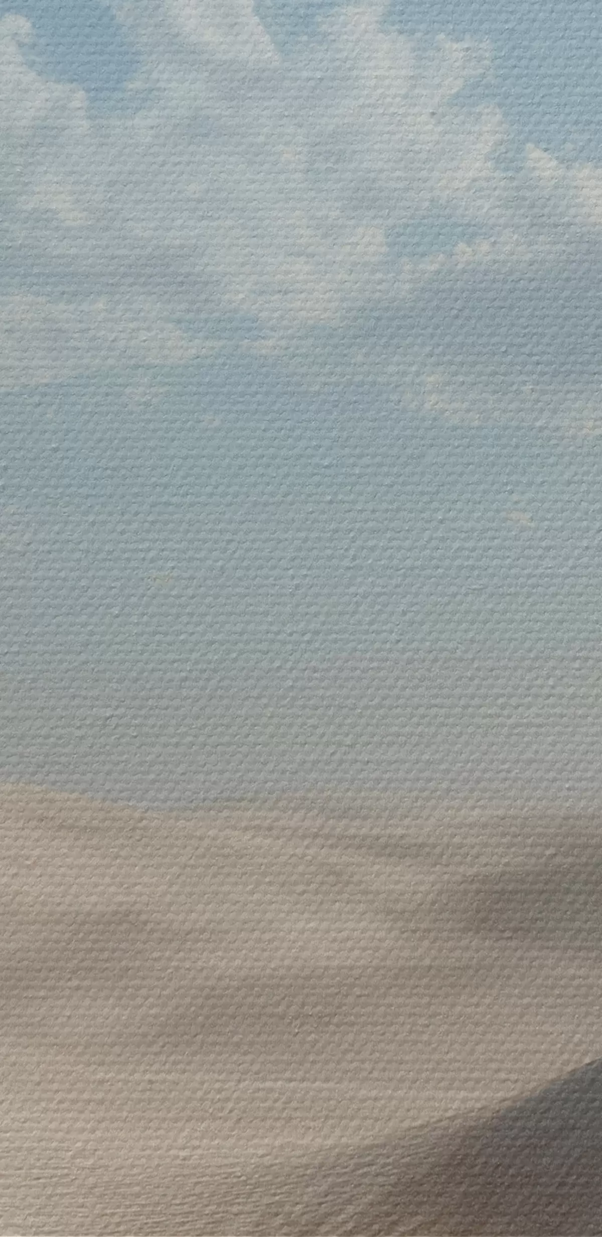 Selle lõuendi peenike niidipunus meenutab professionaalse kunstniku lõuendi pinda.