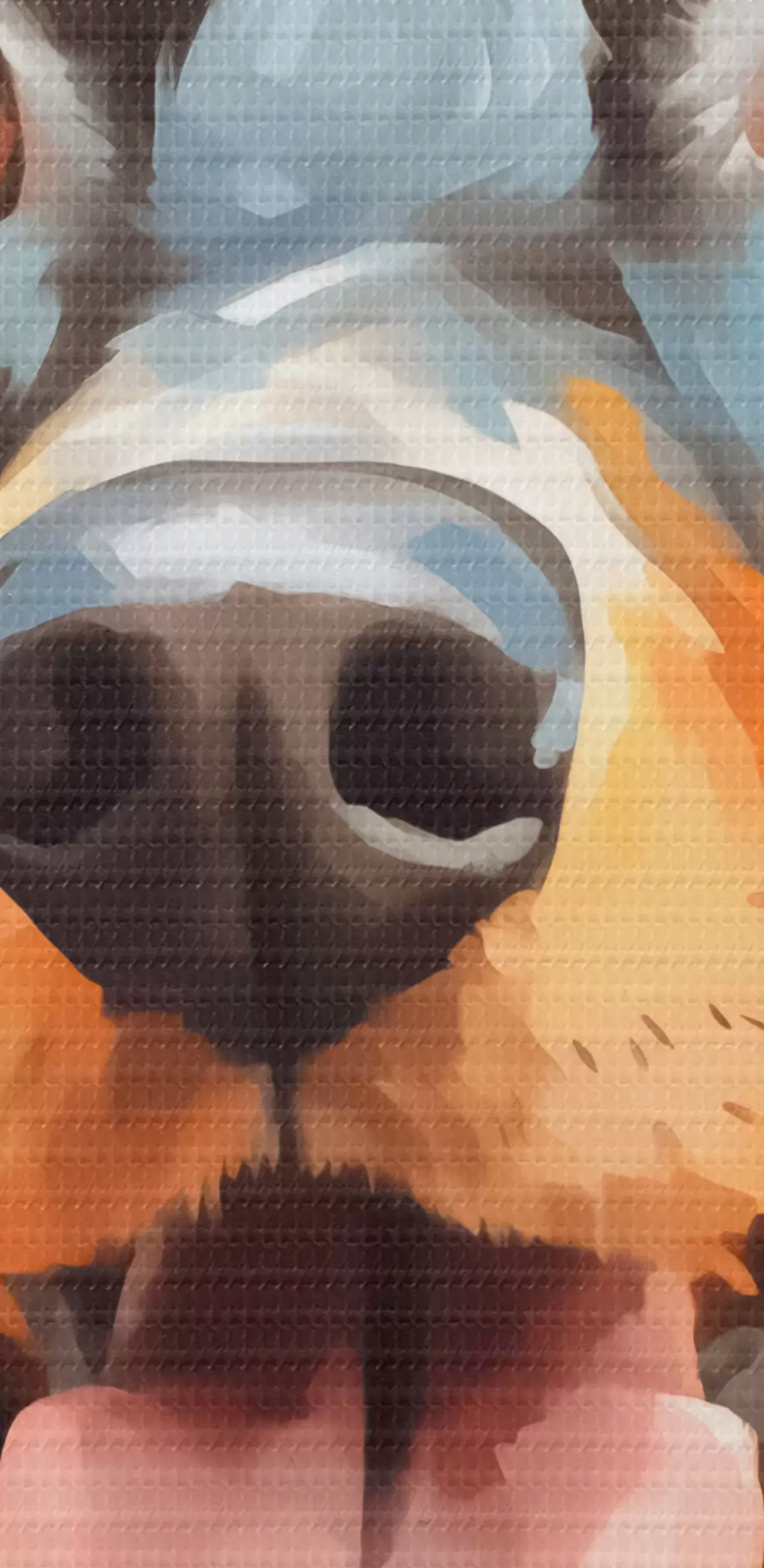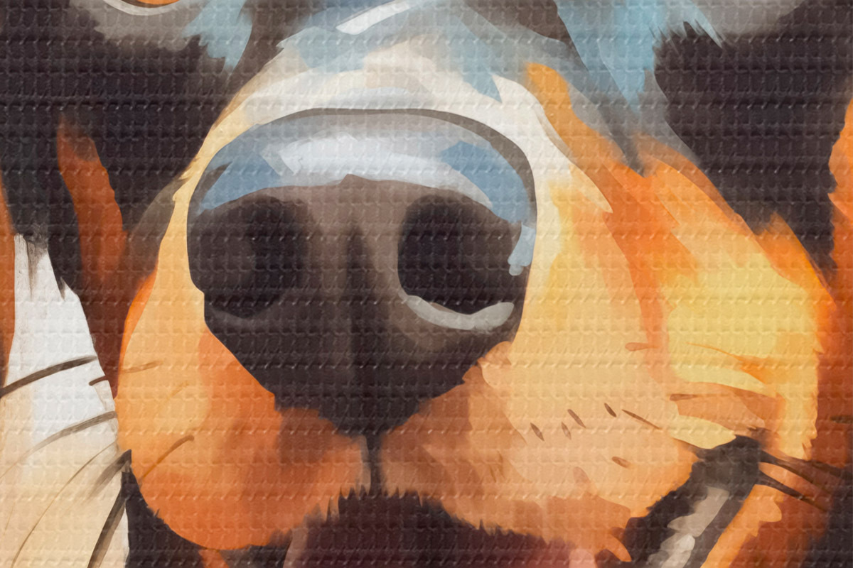 Selle lõuendi peenike niidipunus meenutab professionaalse kunstniku lõuendi pinda.