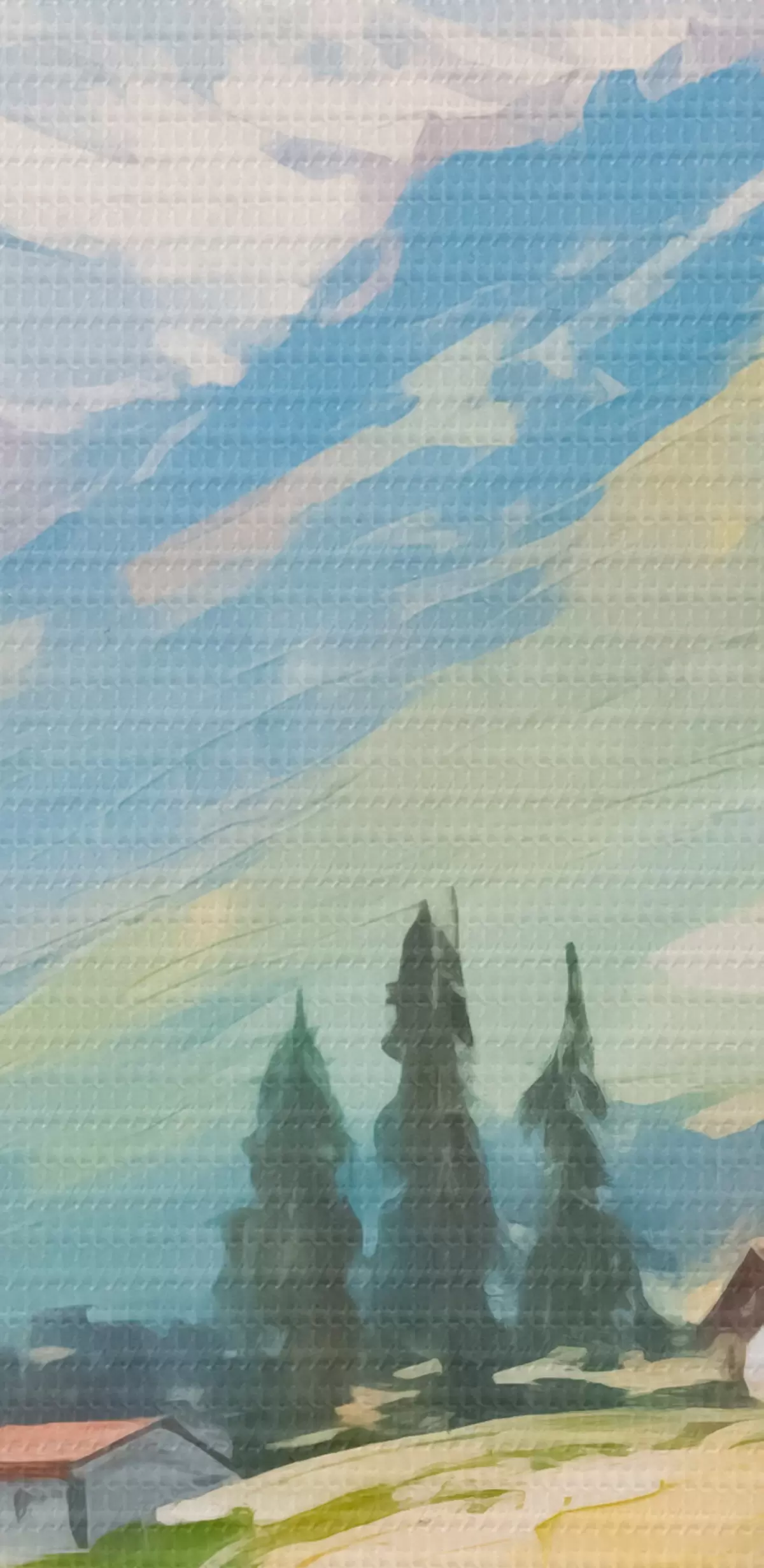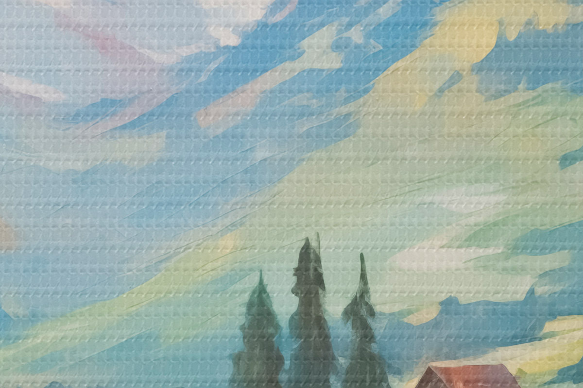 Selle lõuendi peenike niidipunus meenutab professionaalse kunstniku lõuendi pinda.