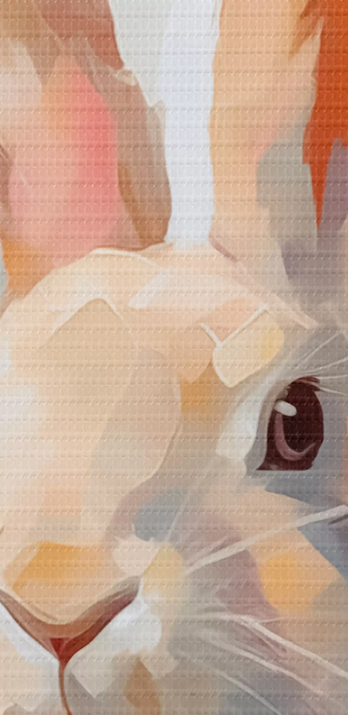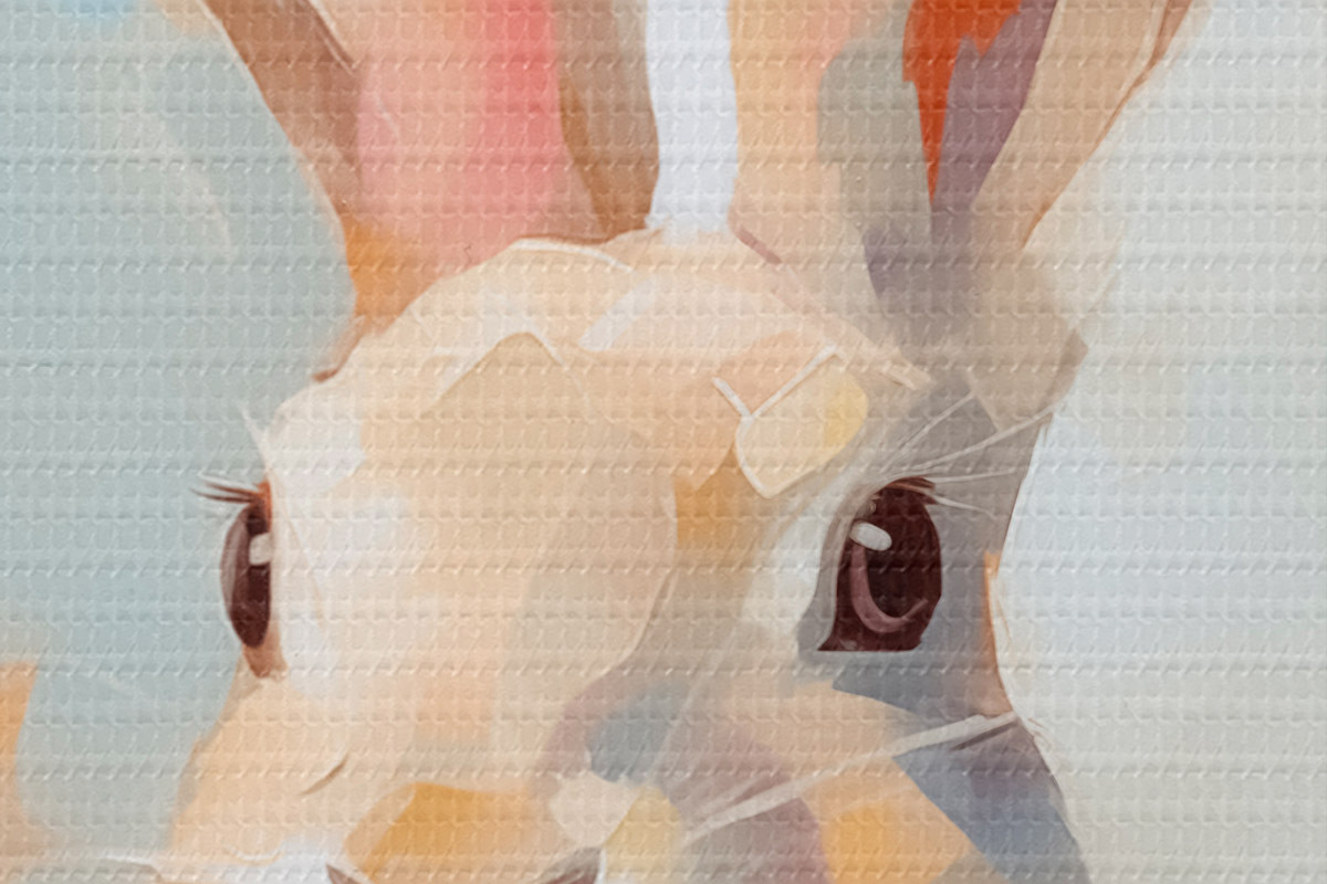 Selle lõuendi peenike niidipunus meenutab professionaalse kunstniku lõuendi pinda.