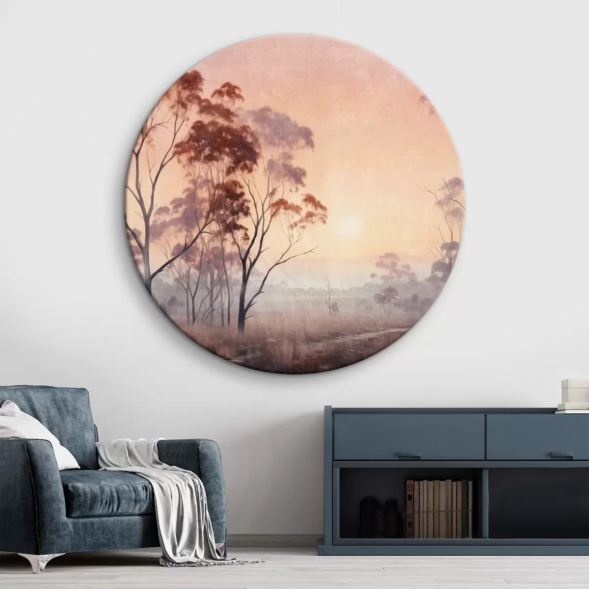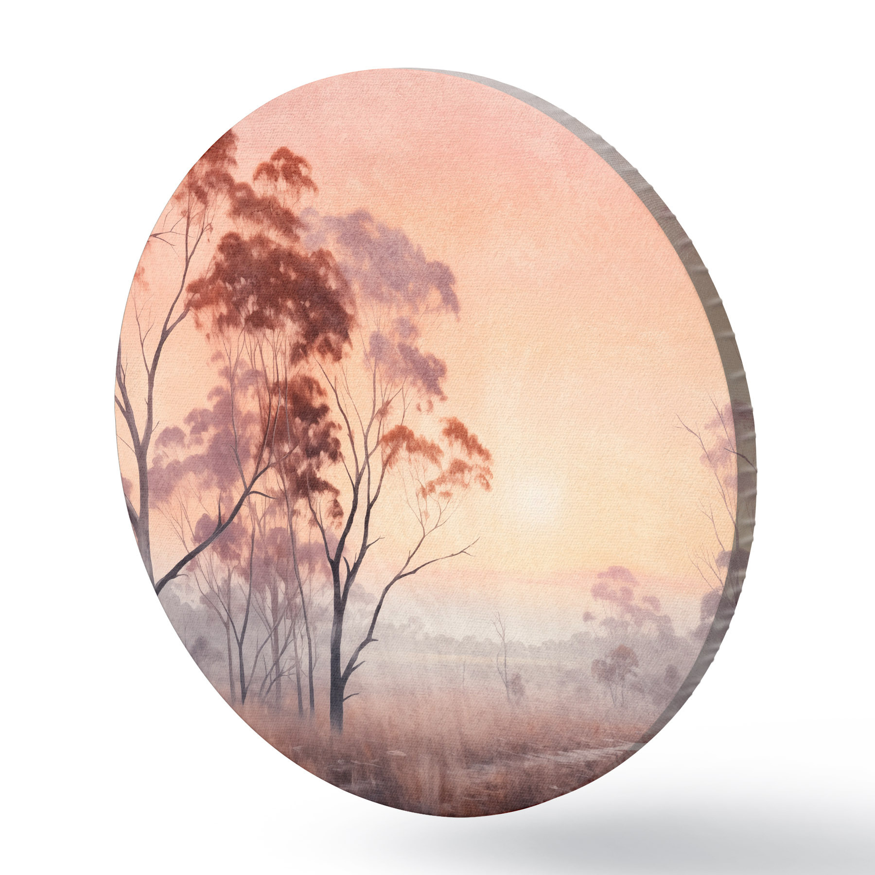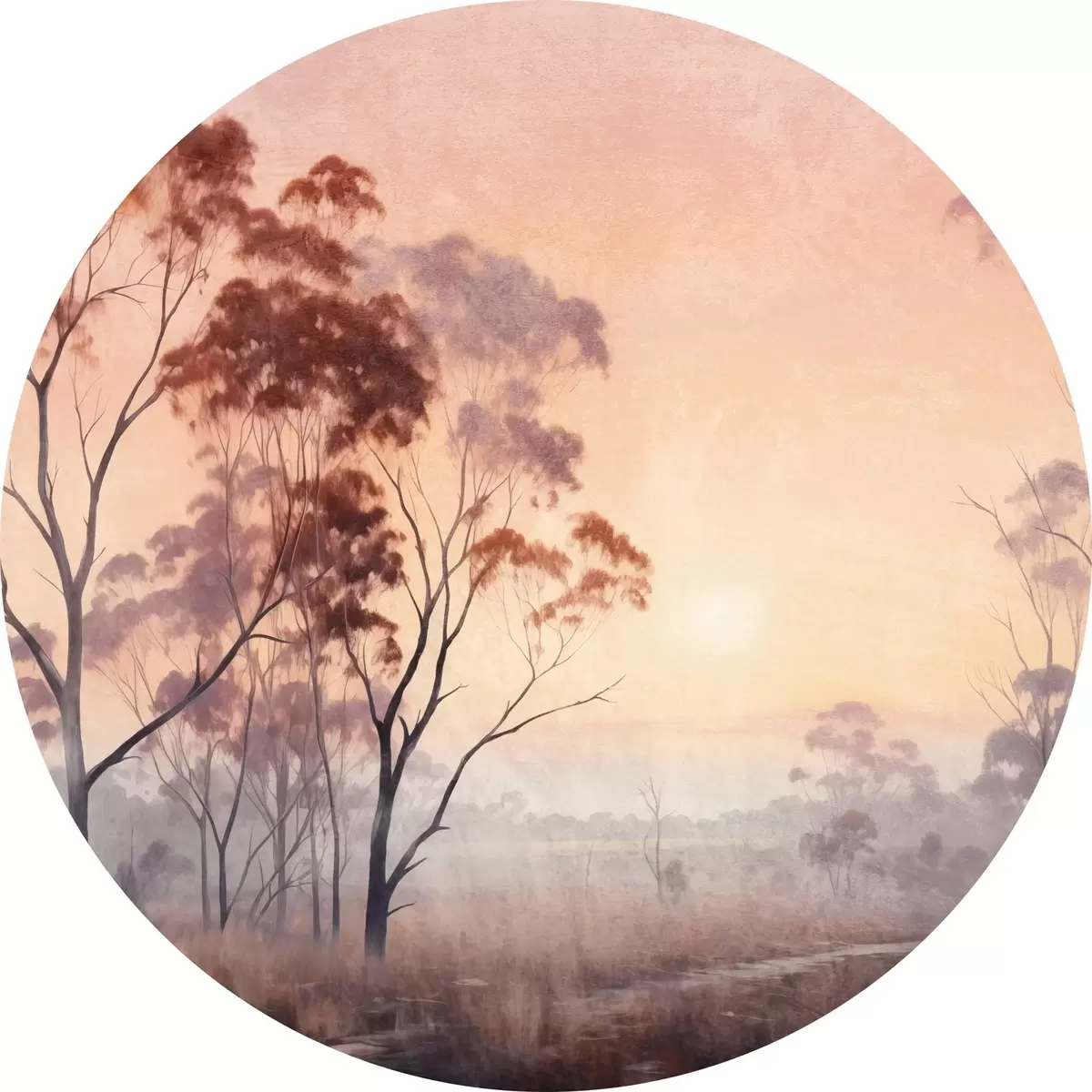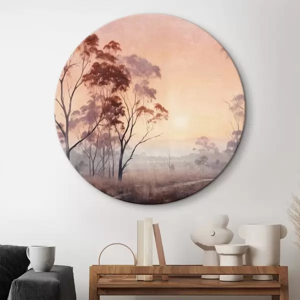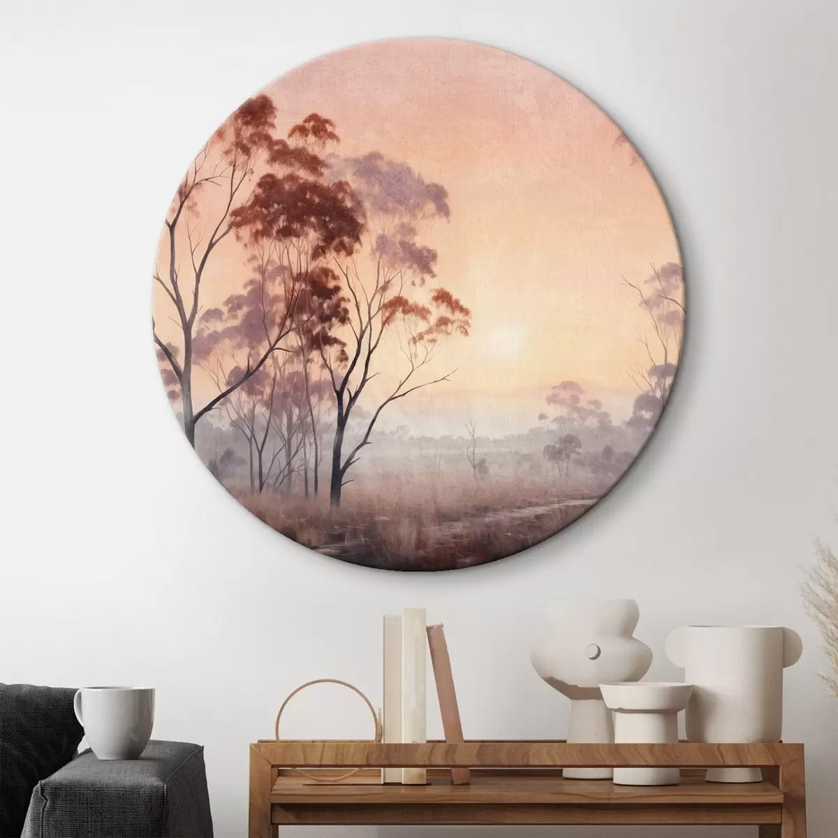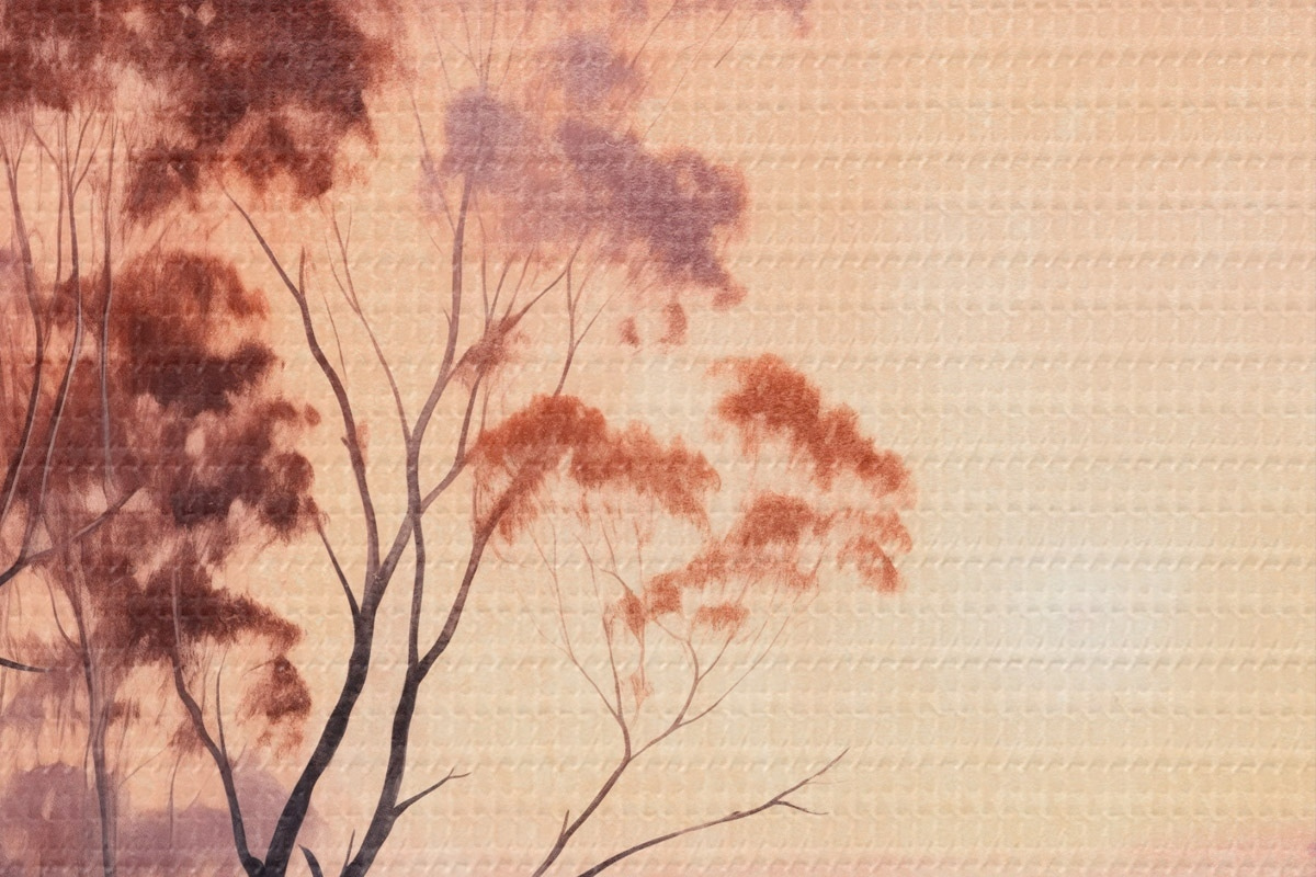 Pilt Maastikumaal kõrge rohu ja puudega põllul, taustal on päike Nr r44854
