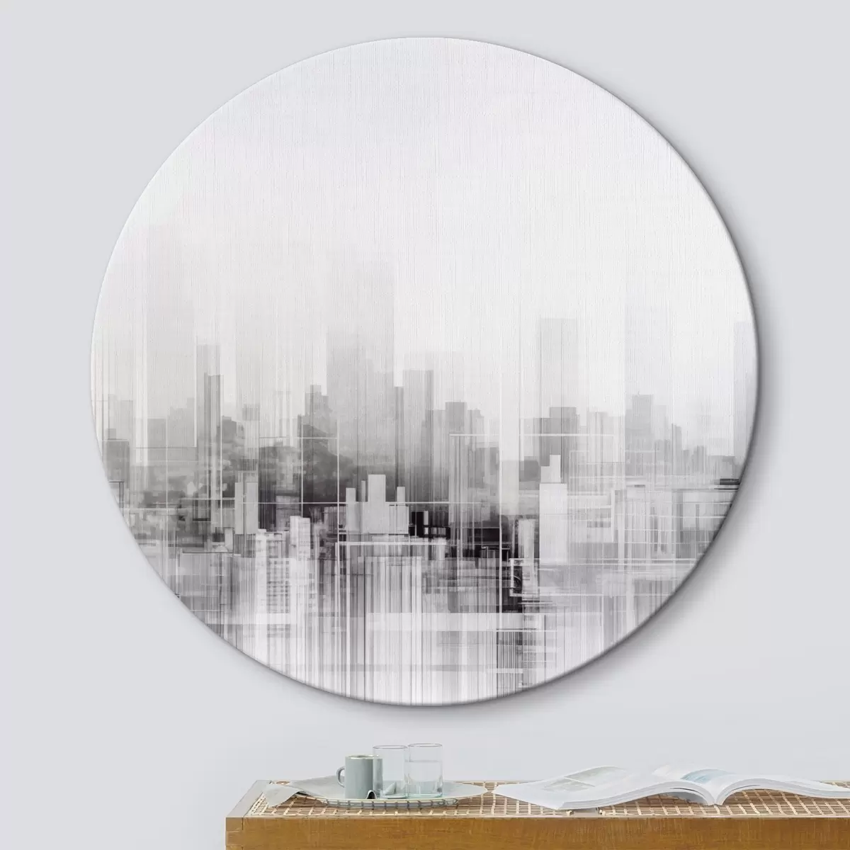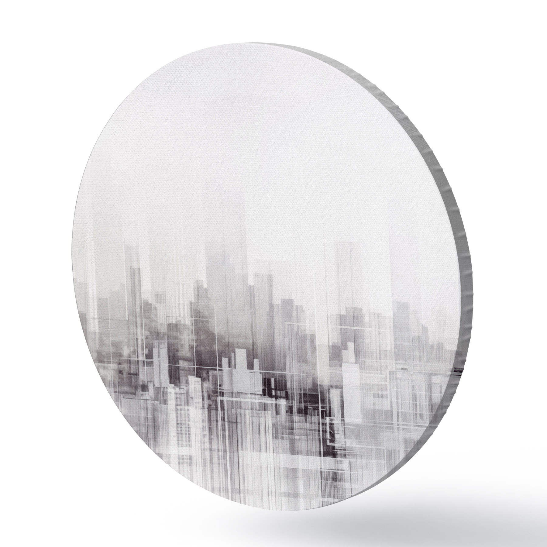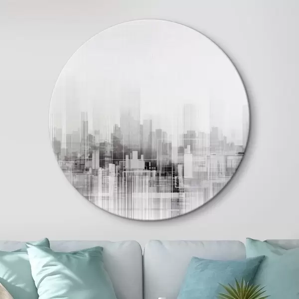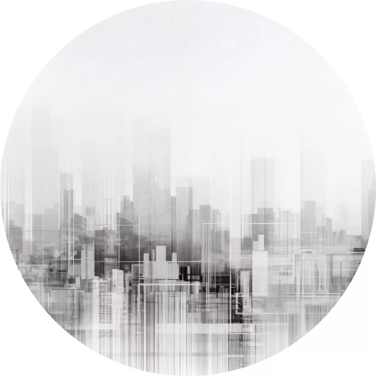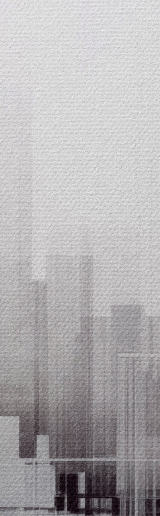 Pilt Tekstuurne minimalistlik linnapilt kõrgete hoonete ja pilvelõhkujatega, siluettidena valge taeva taustal Nr r44863