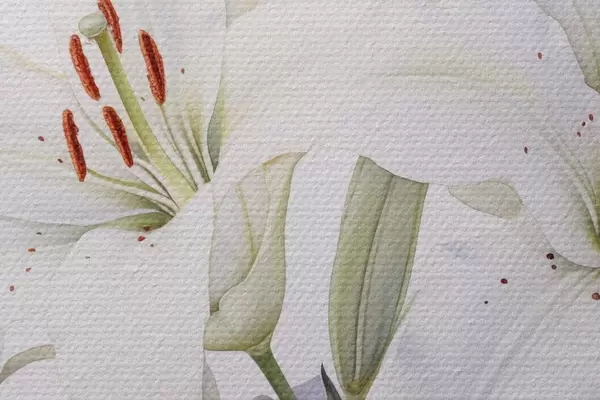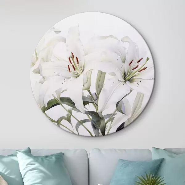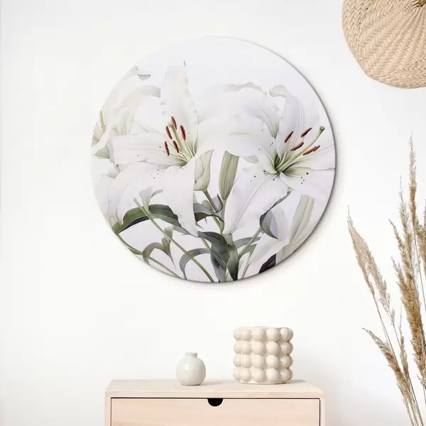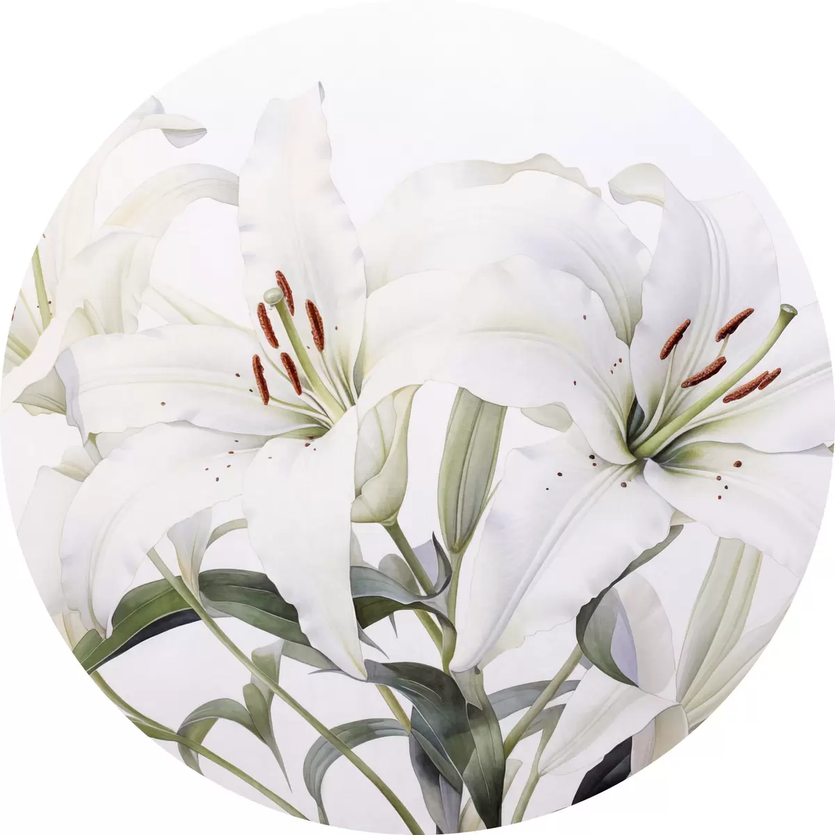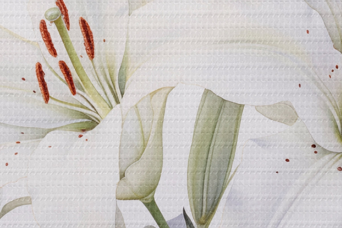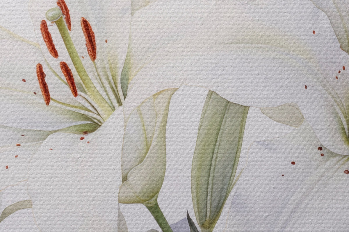 Pilt Roheliste lehtedega, õrnade kroonlehtedega ja pehme valge taustaga valge lillede kimp Nr r44868