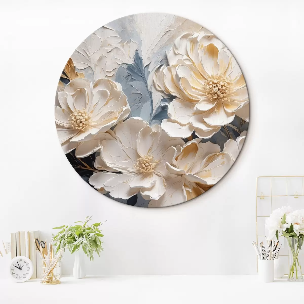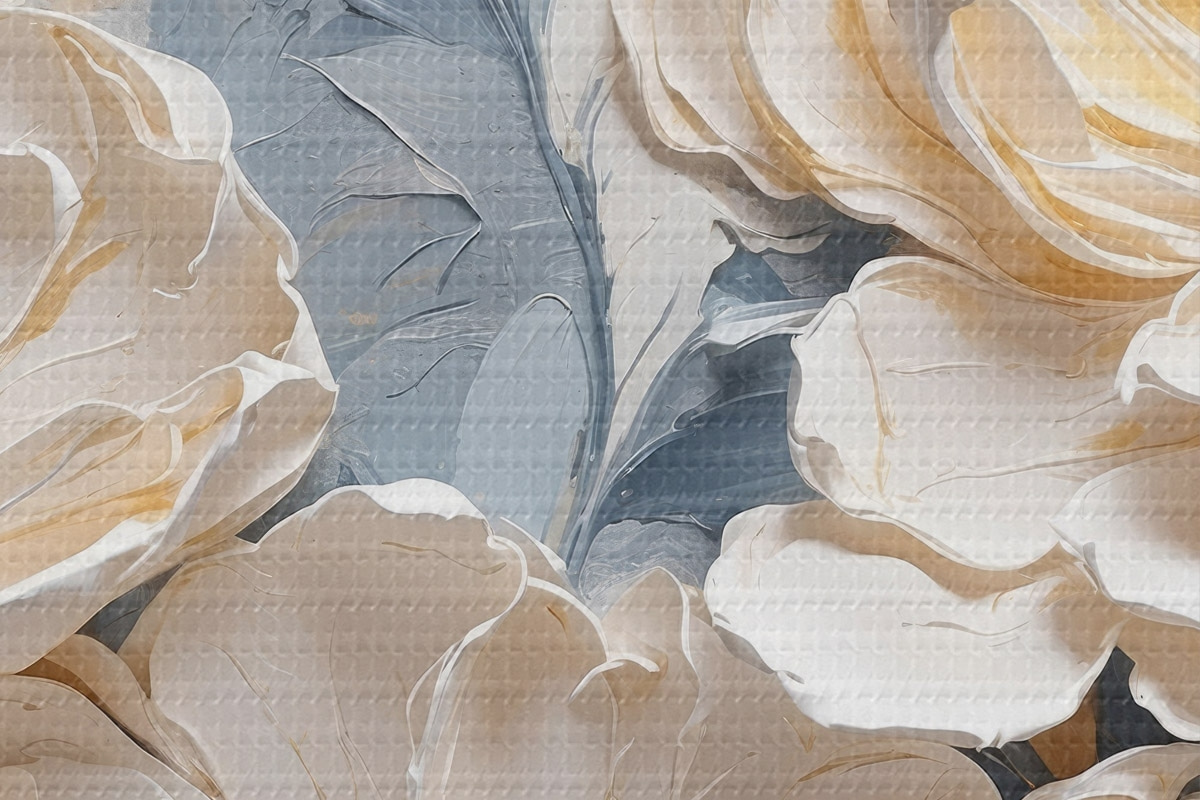 Pilt Volüümilised kreemjad pojengid helesinisel taustal Nr r44880