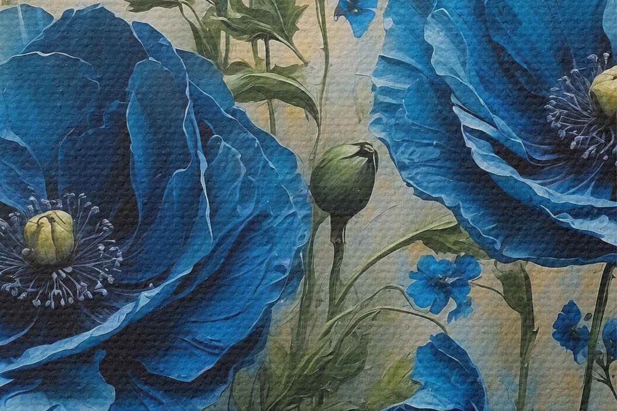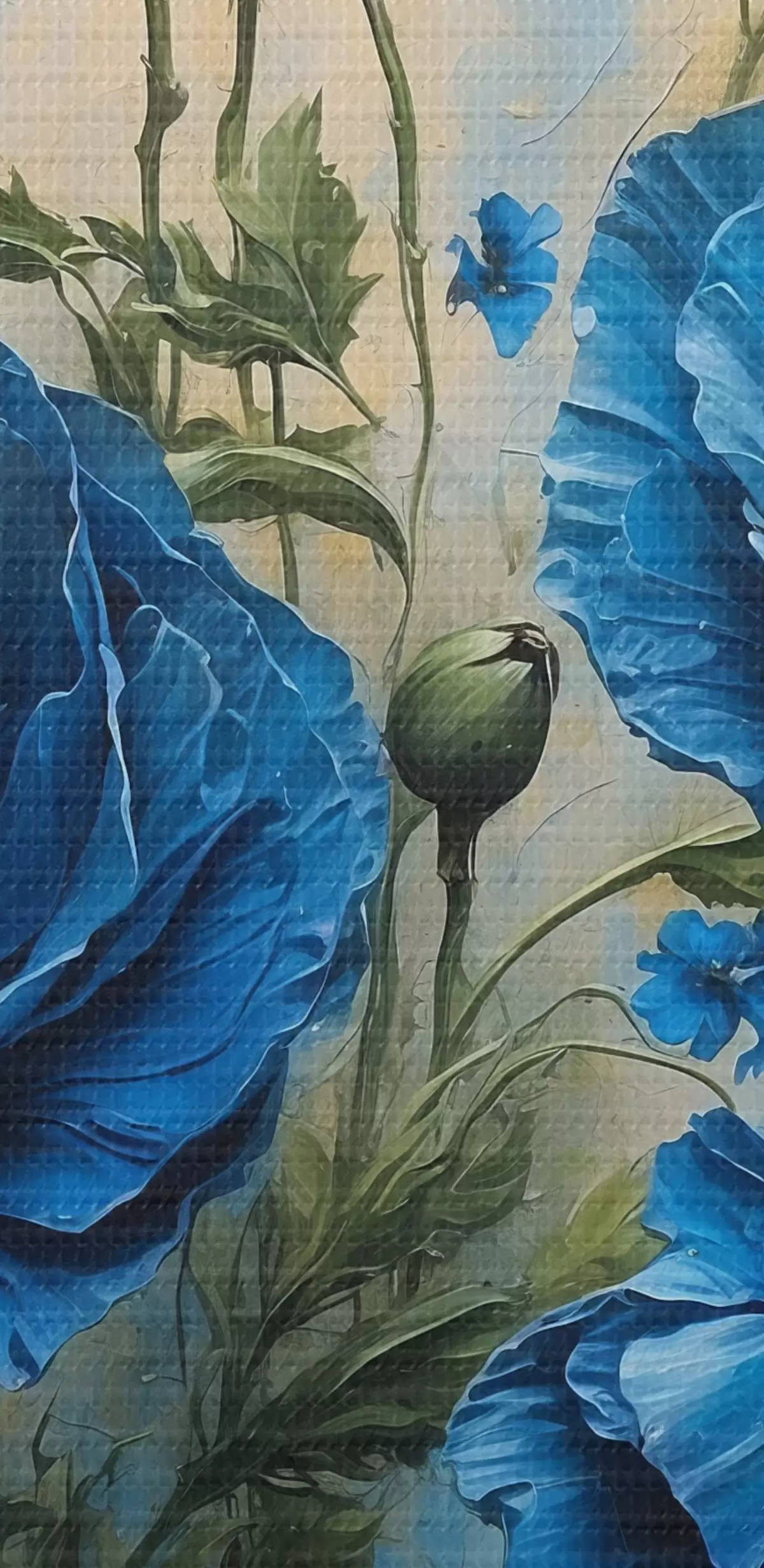 Pilt Sinised moonid pastelsel taustal koos lehtedega Nr r44882