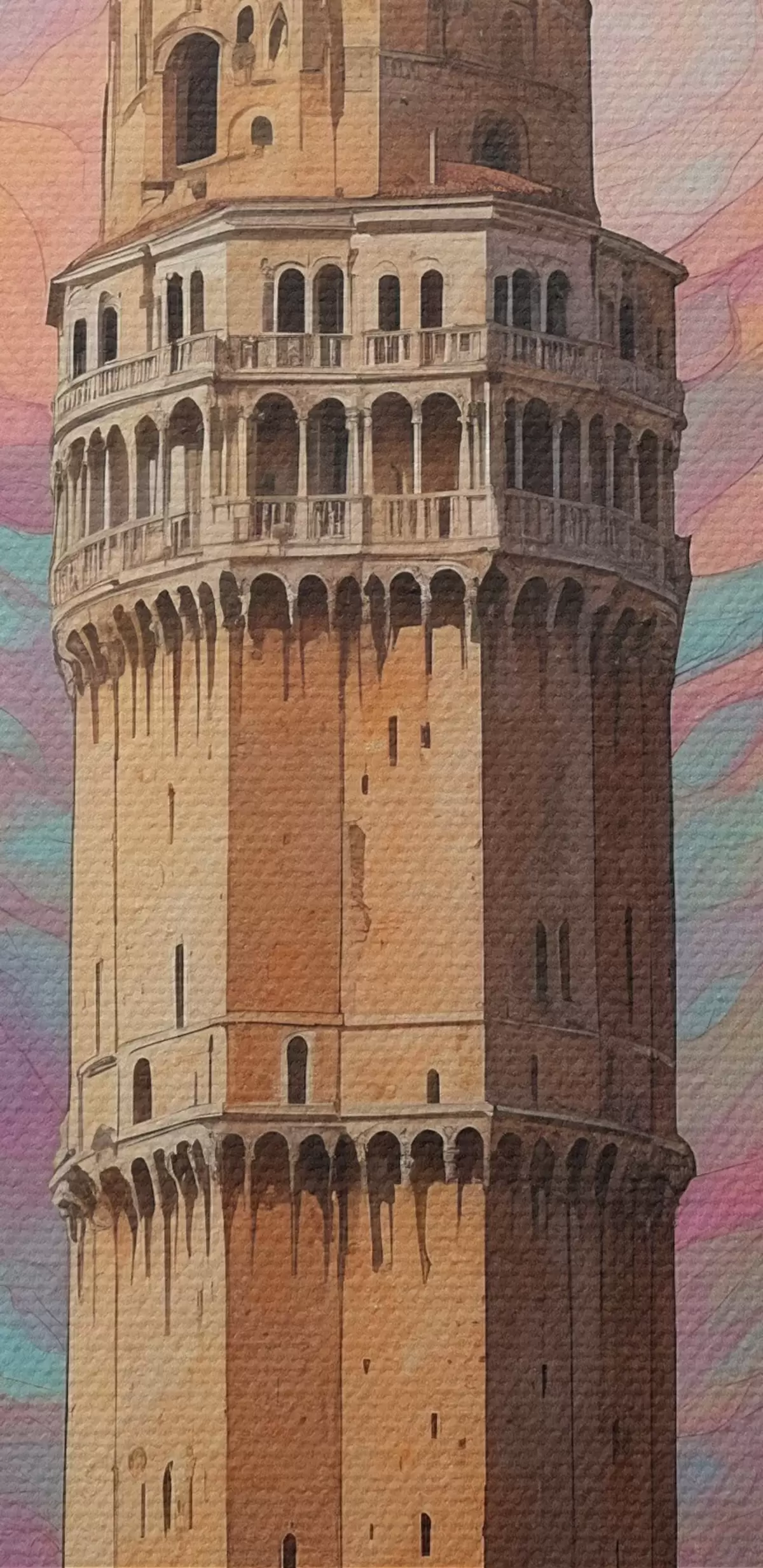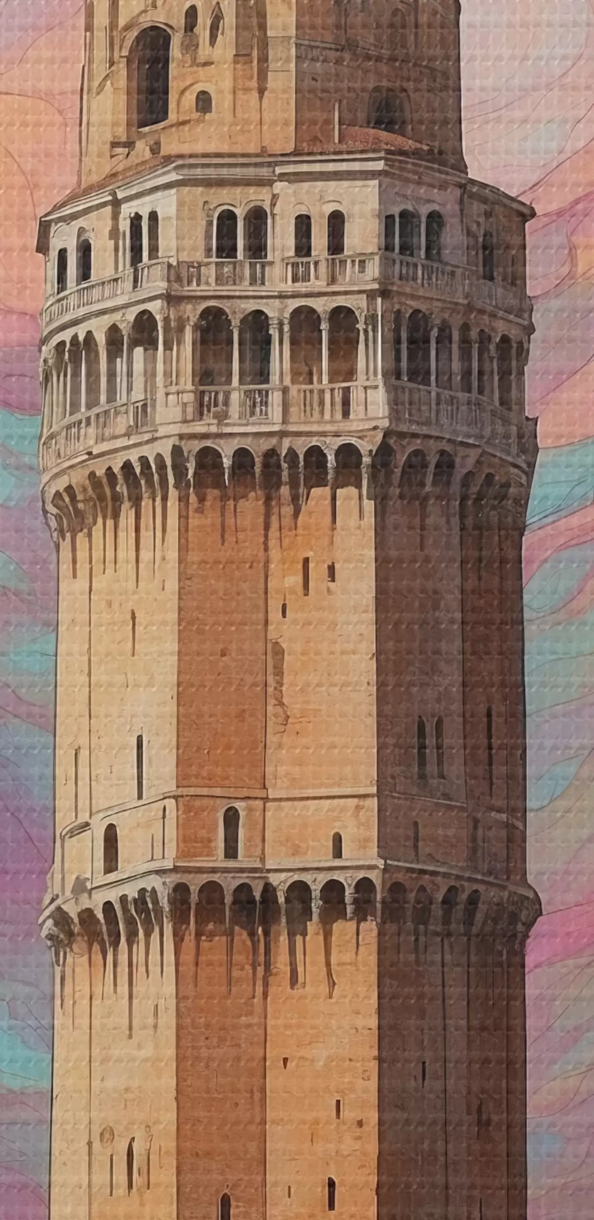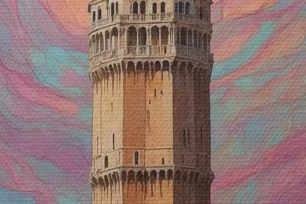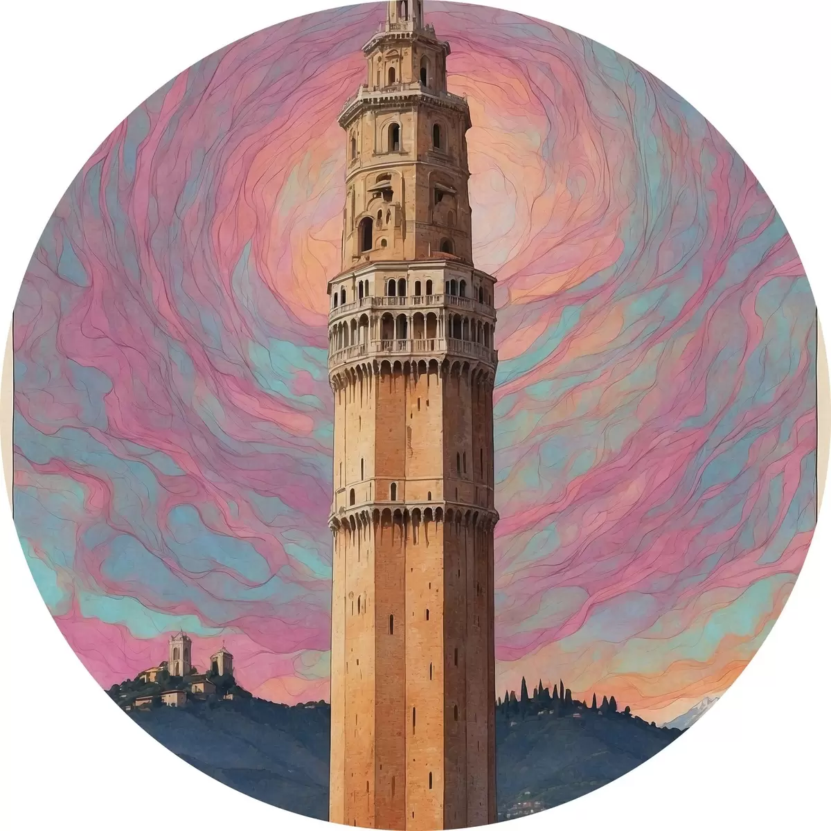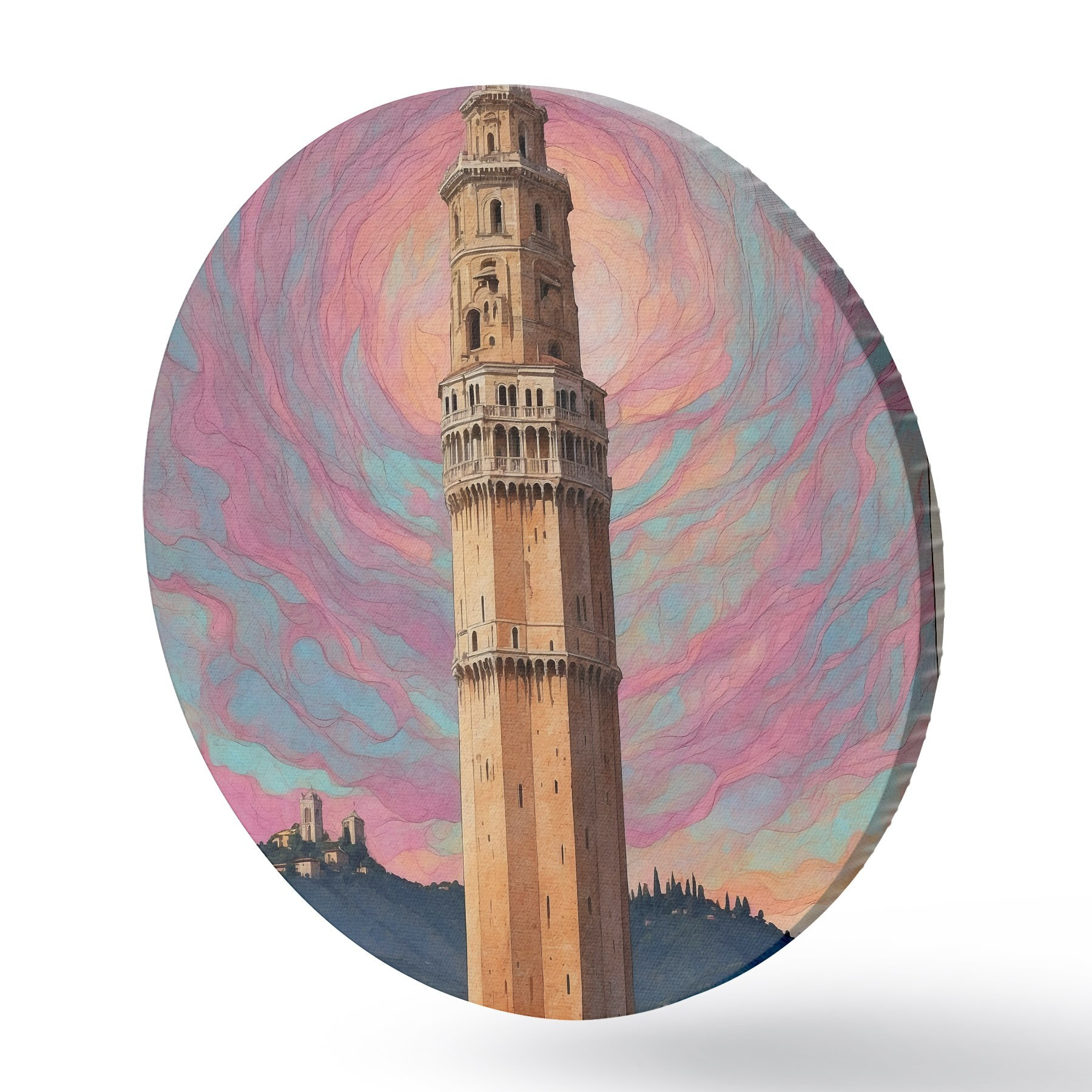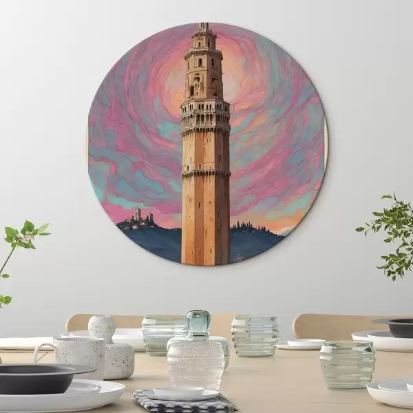 Ümmargused maalid Fantaasiatorn vastu taevast roosa ja siniste spiraalidega r44885