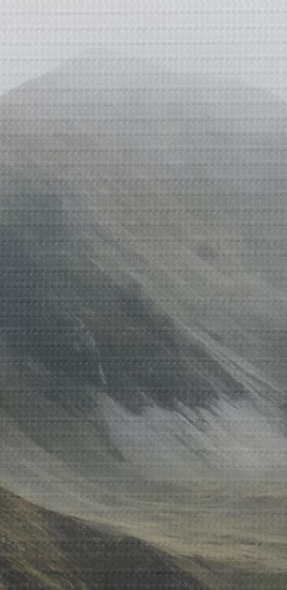 Selle lõuendi peenike niidipunus meenutab professionaalse kunstniku lõuendi pinda.