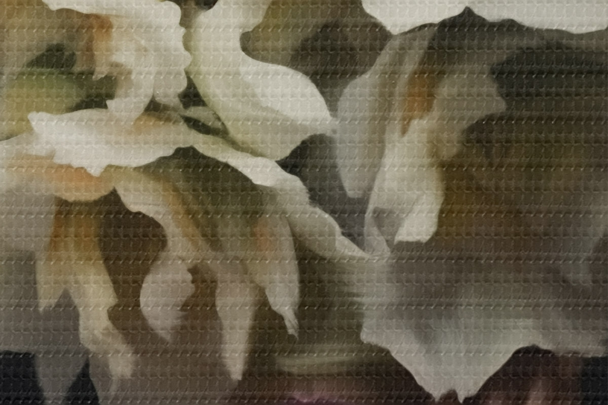 Selle lõuendi peenike niidipunus meenutab professionaalse kunstniku lõuendi pinda.