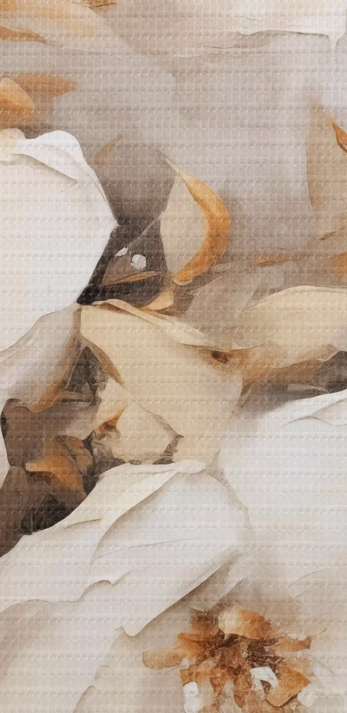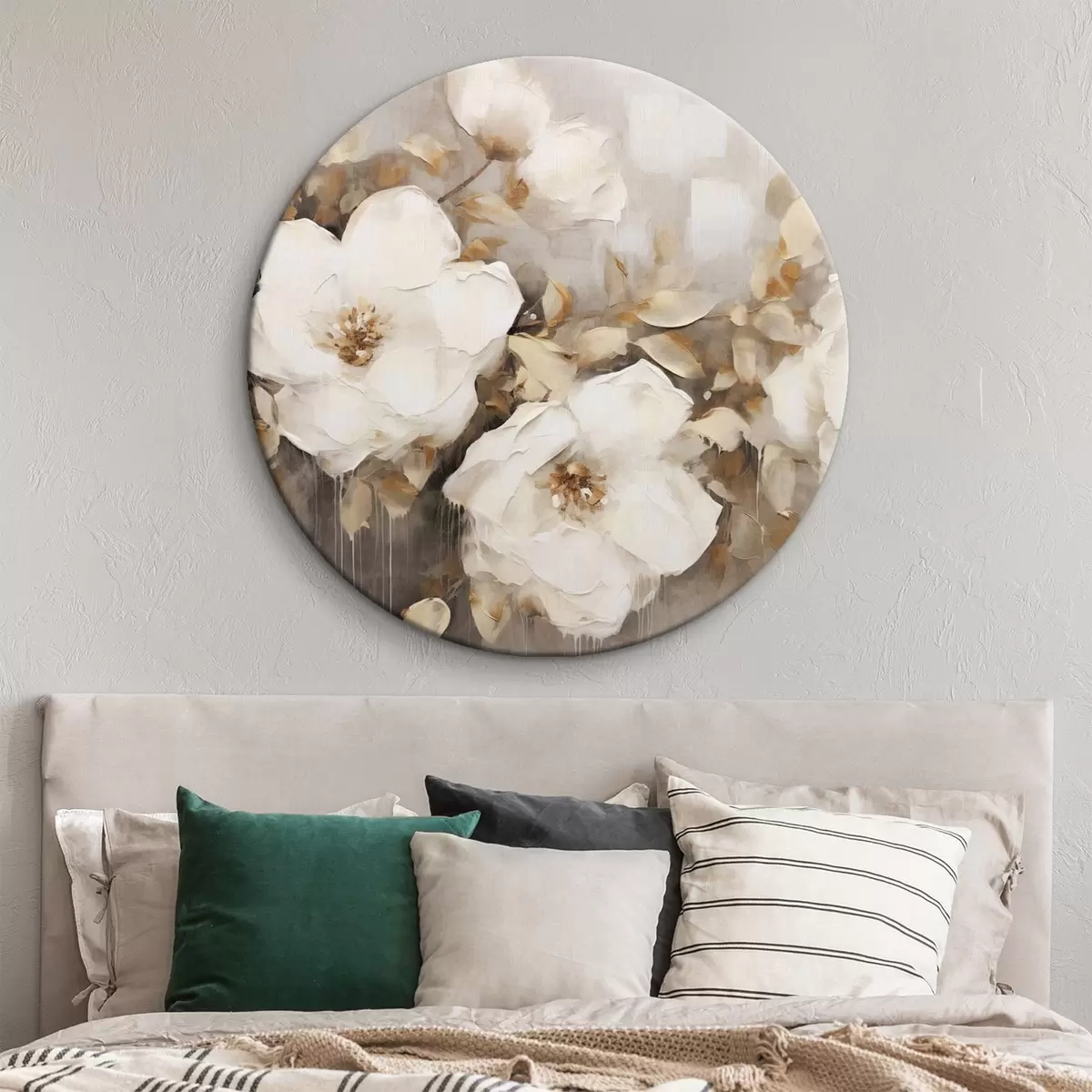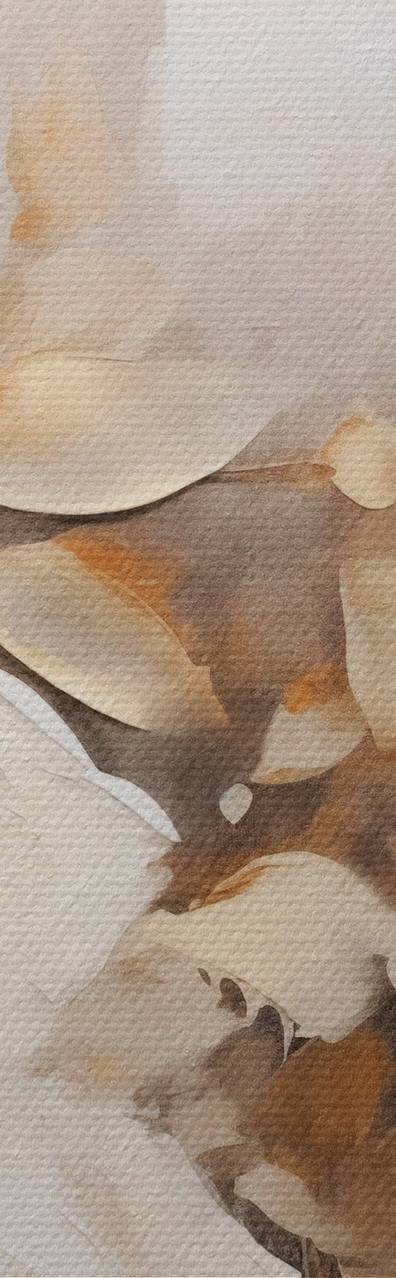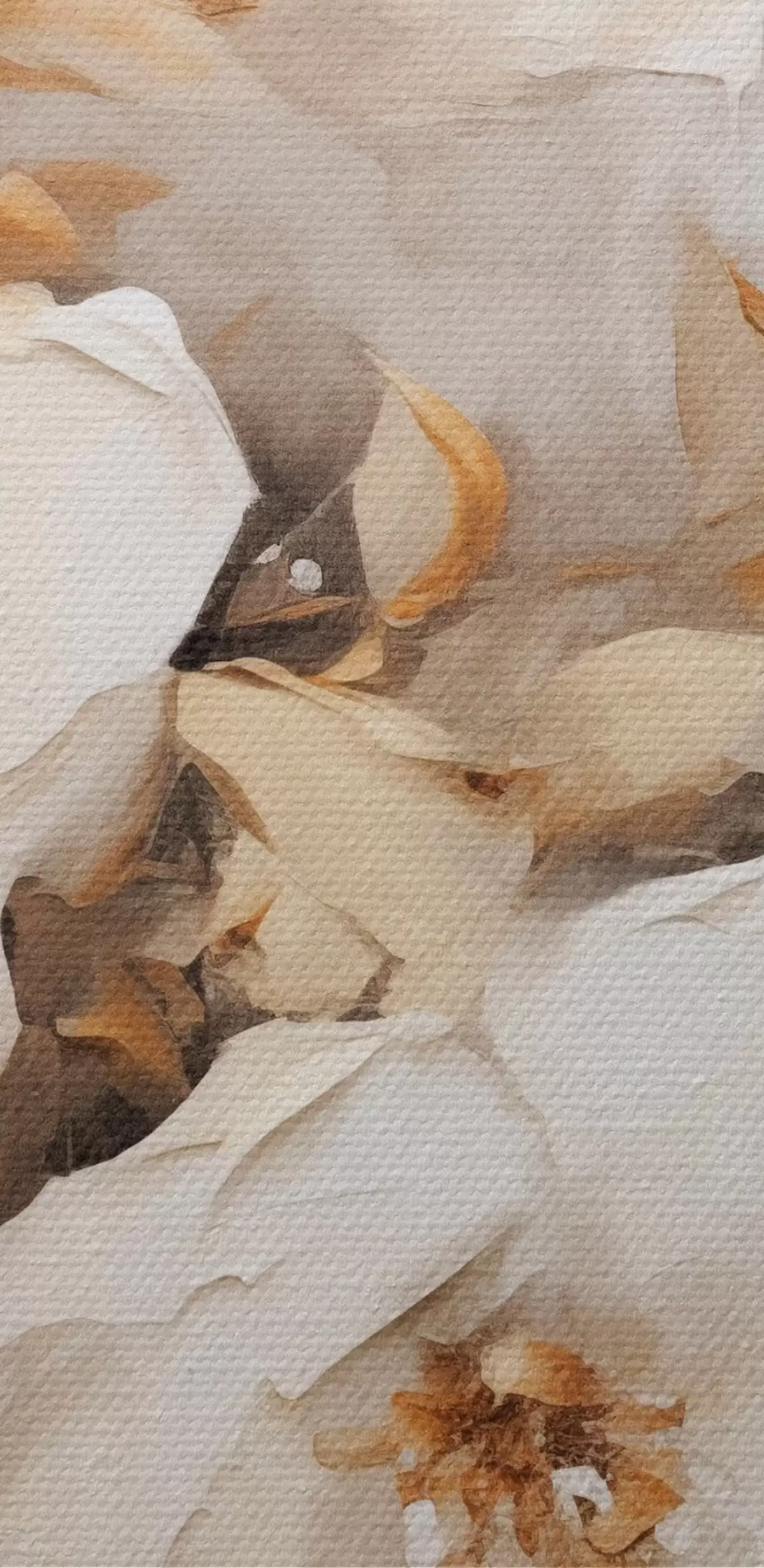Pilt Valged lilled koos pruunide lehtedega beežil taustal, õlimaalide imitatsioon, lillekokkulepe, botaaniline kunst Nr r44922