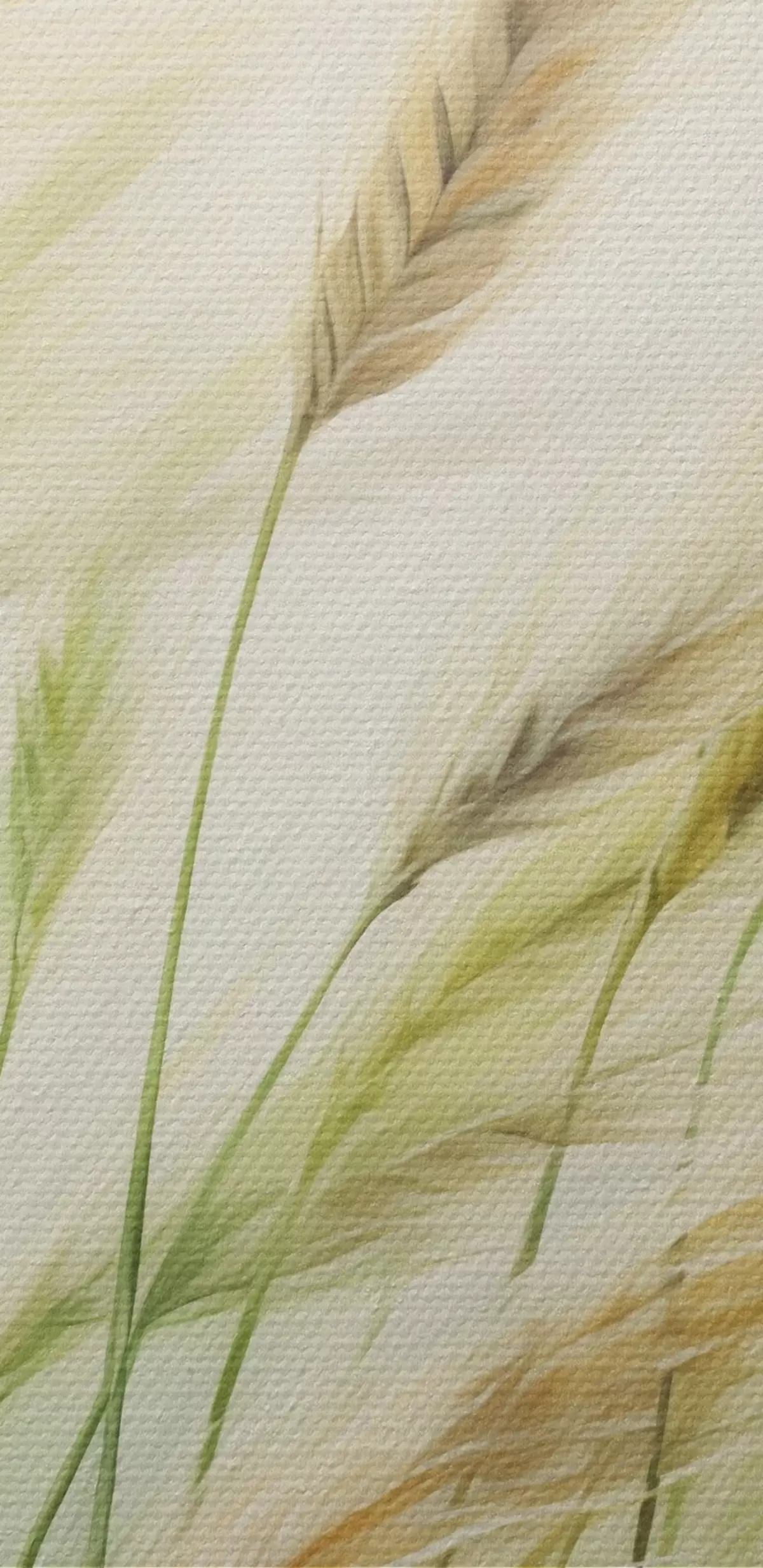 Pilt Nisupõld kollaste ja roheliste viljateradega, pehmed pintslitõmbed ja kerge värvipalett, loomulik atmosfäär Nr r44923
