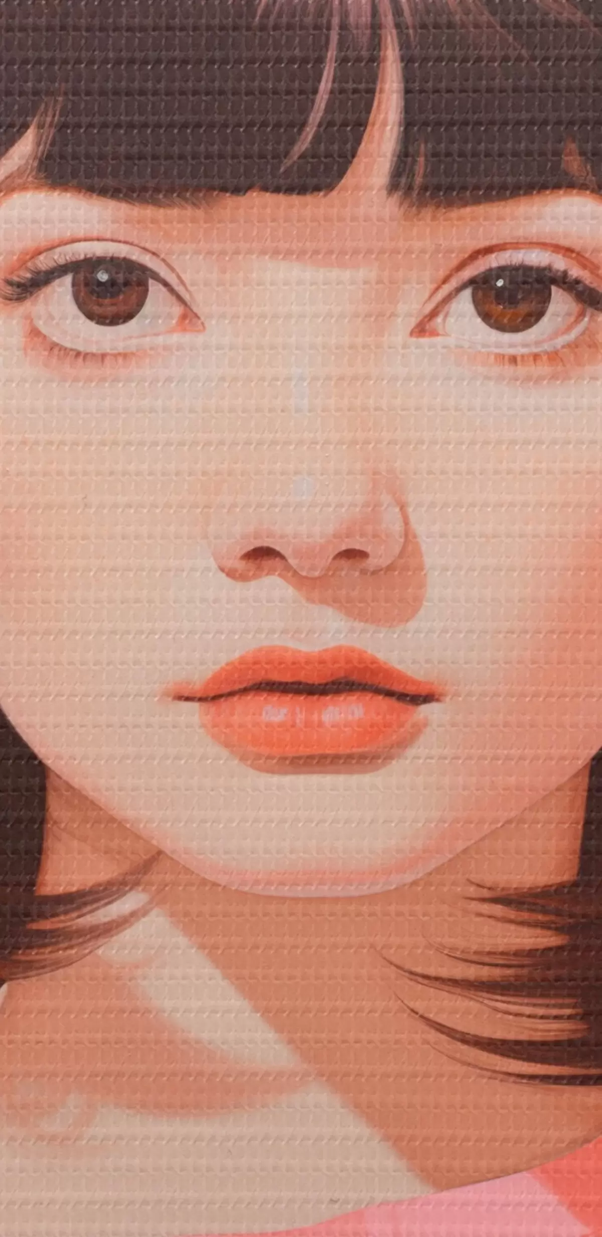Selle lõuendi peenike niidipunus meenutab professionaalse kunstniku lõuendi pinda.