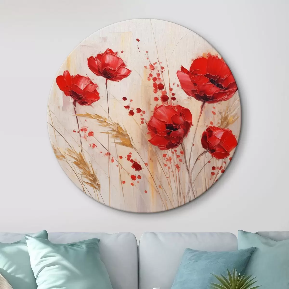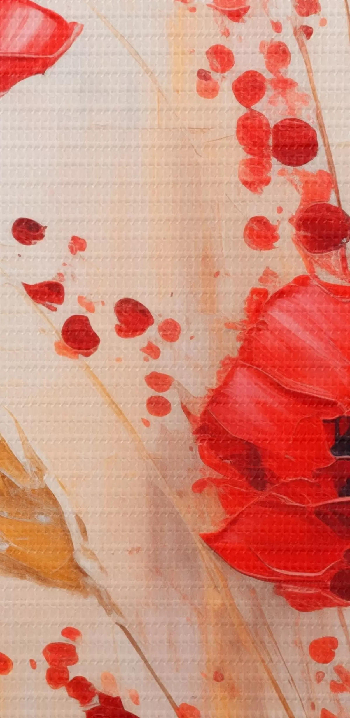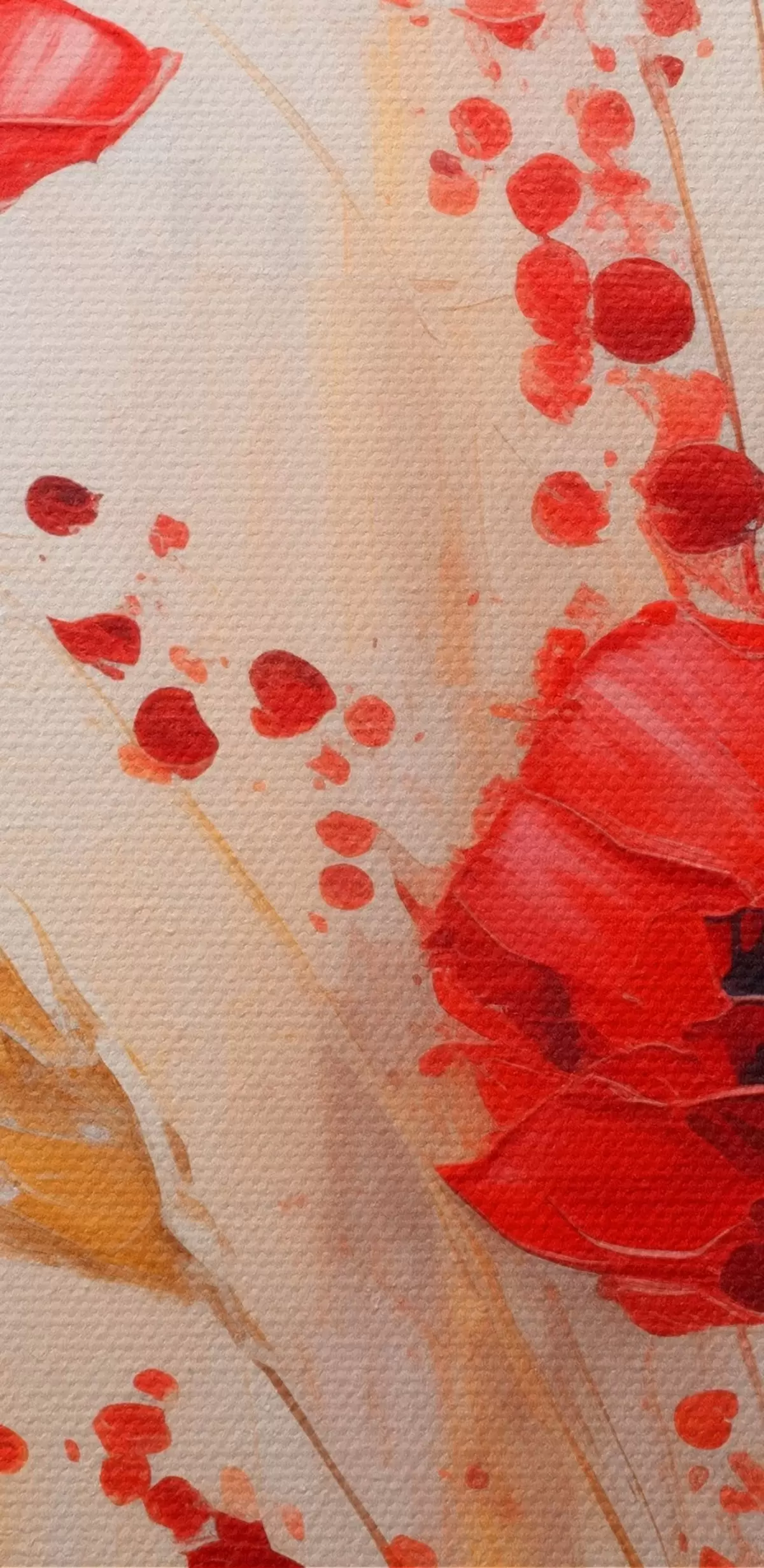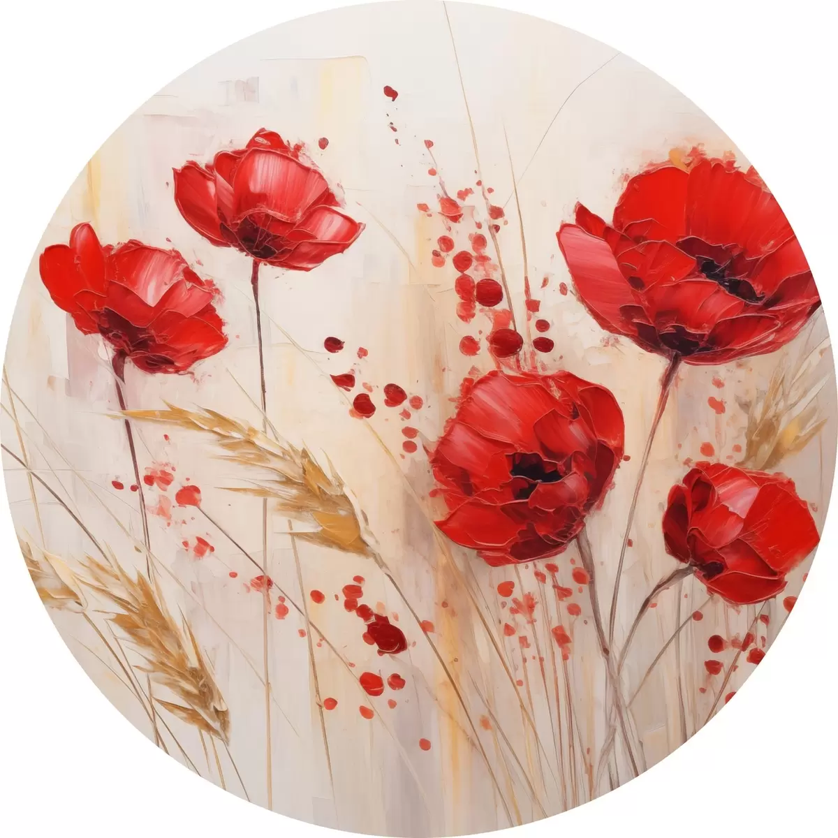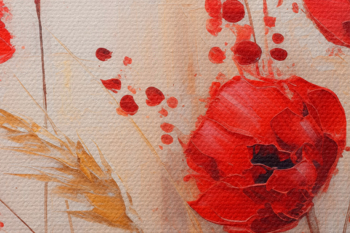 Pilt Punased moonililled koos kollaste nisuvartega, pehmel, neutraalsel taustal, millel on punased värviplekid Nr r44926