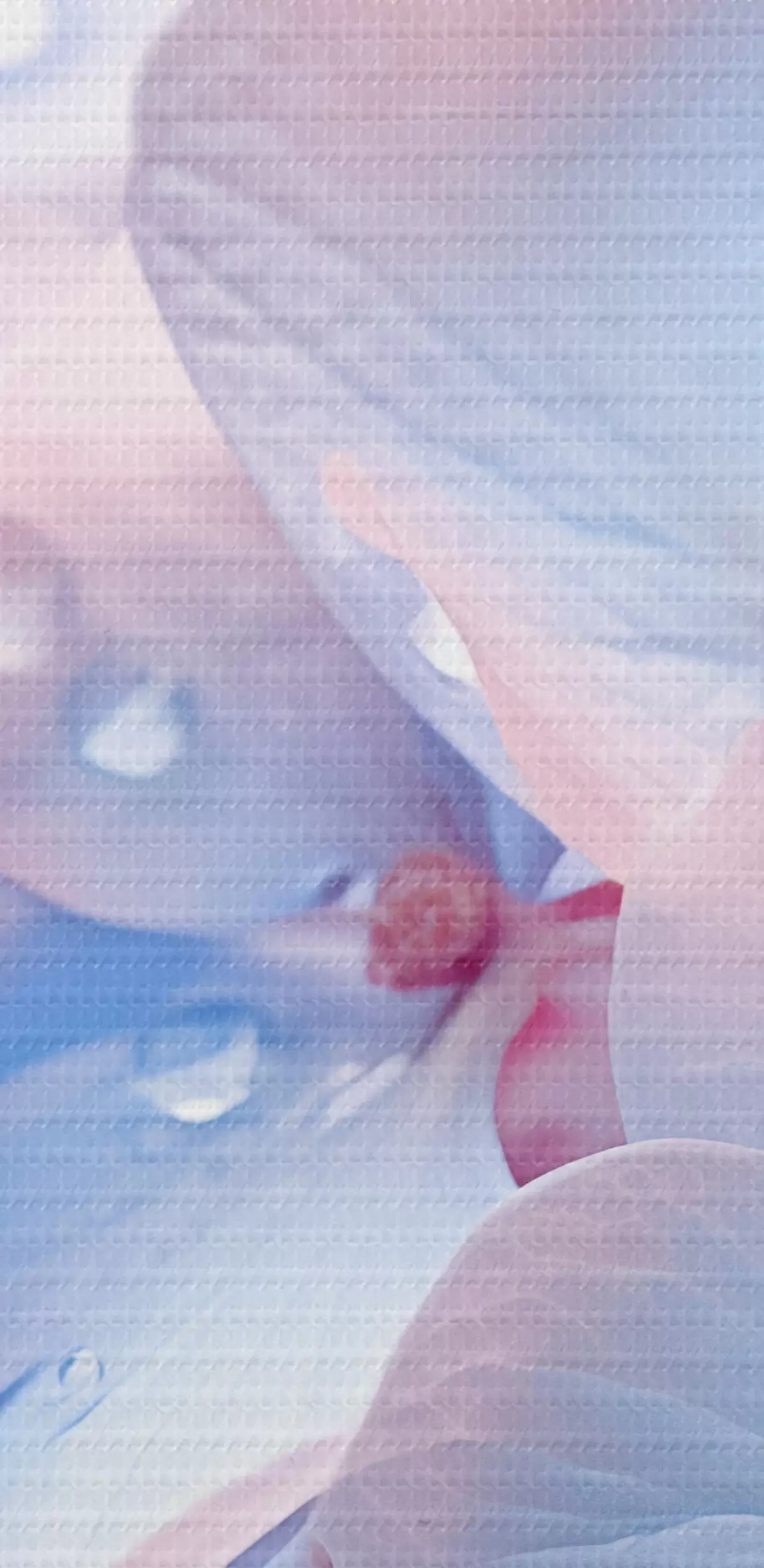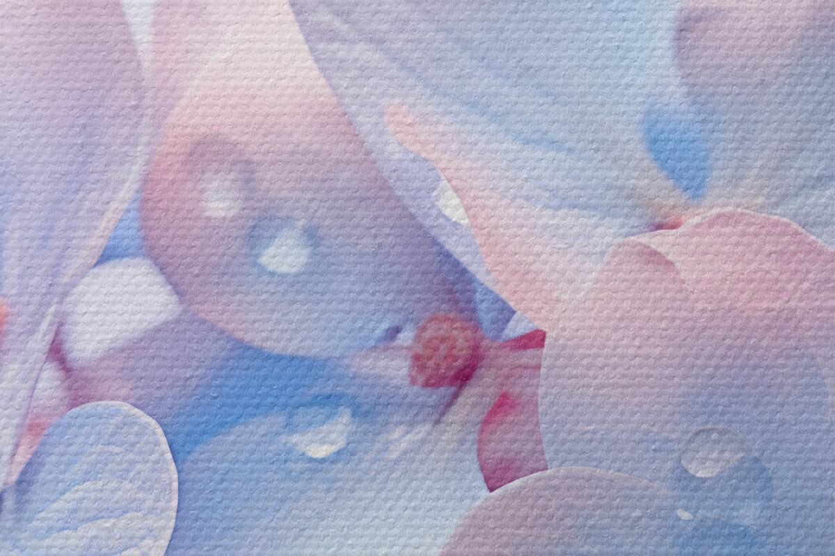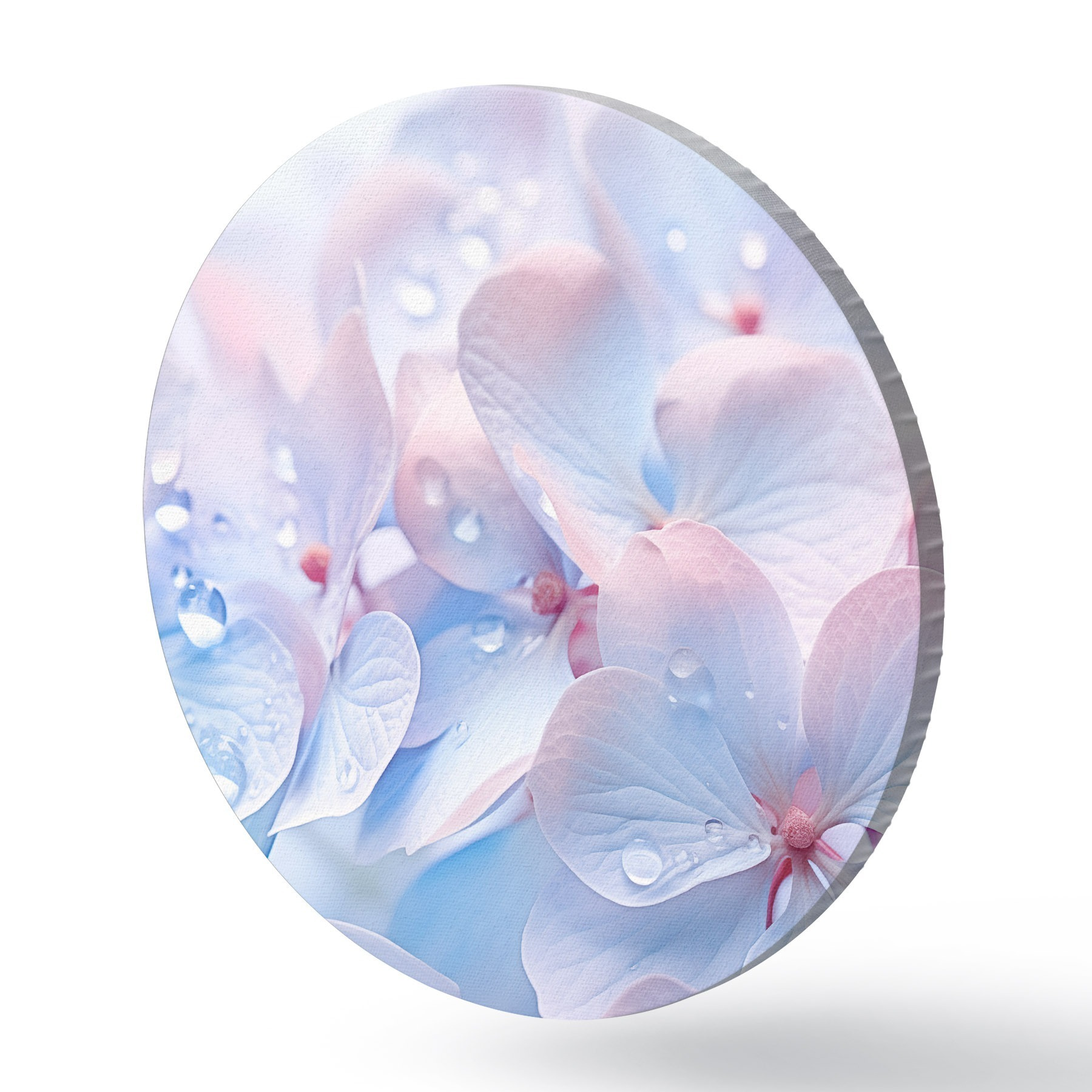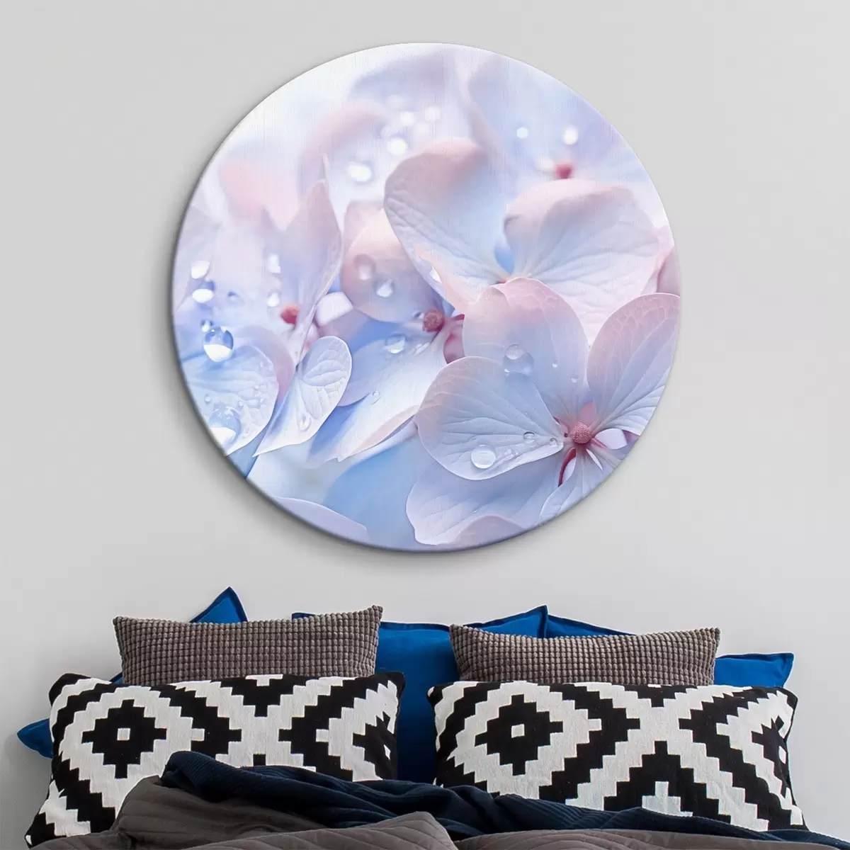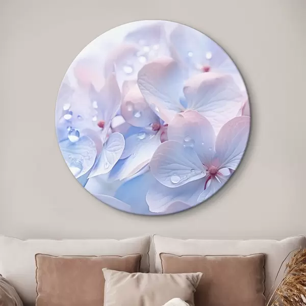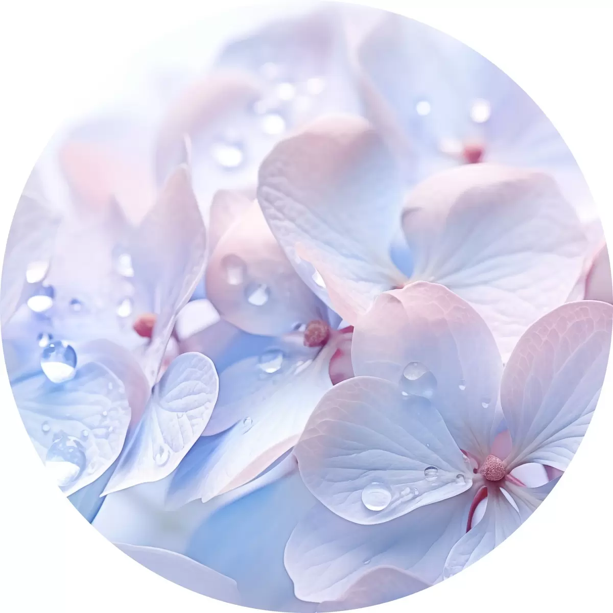 Pilt Hortensialilled veetilkadega õrnadel kroonlehtedel, pehmed pastelsed värvid, helesinised ja roosad toonid Nr r44929