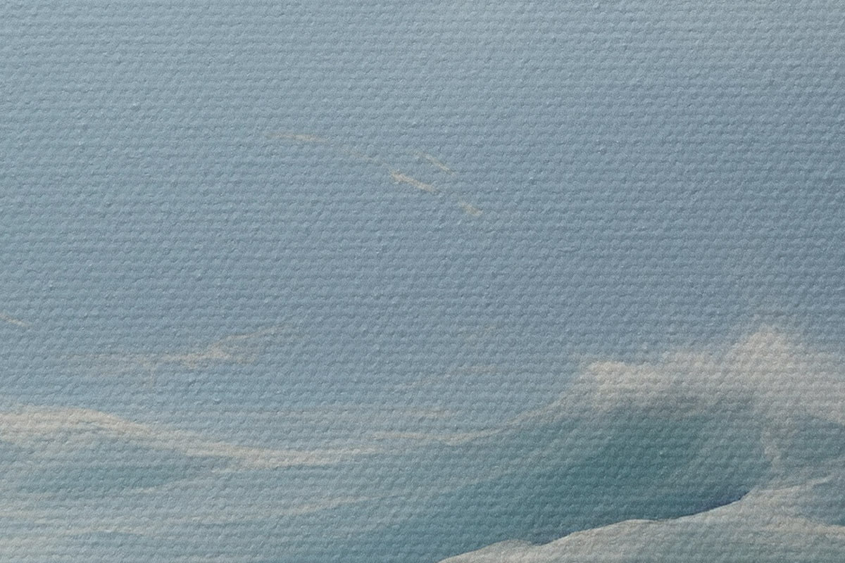 Selle lõuendi peenike niidipunus meenutab professionaalse kunstniku lõuendi pinda.