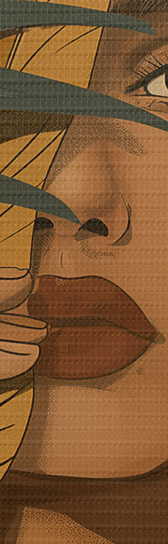 Selle lõuendi peenike niidipunus meenutab professionaalse kunstniku lõuendi pinda.