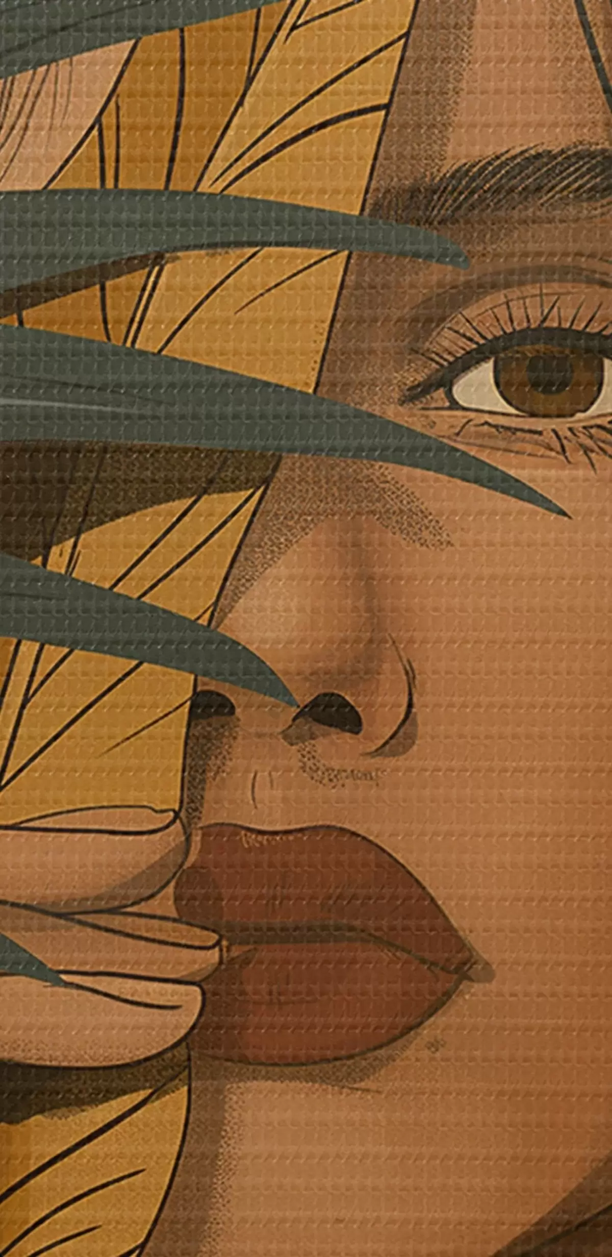 Selle lõuendi peenike niidipunus meenutab professionaalse kunstniku lõuendi pinda.