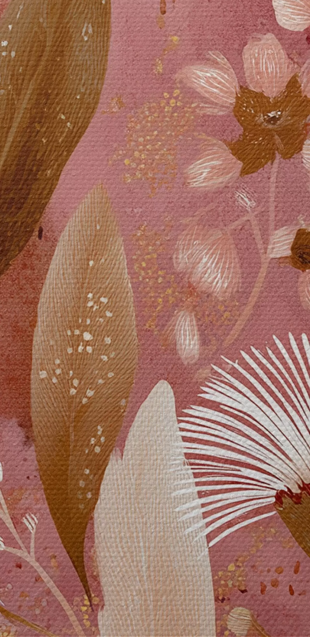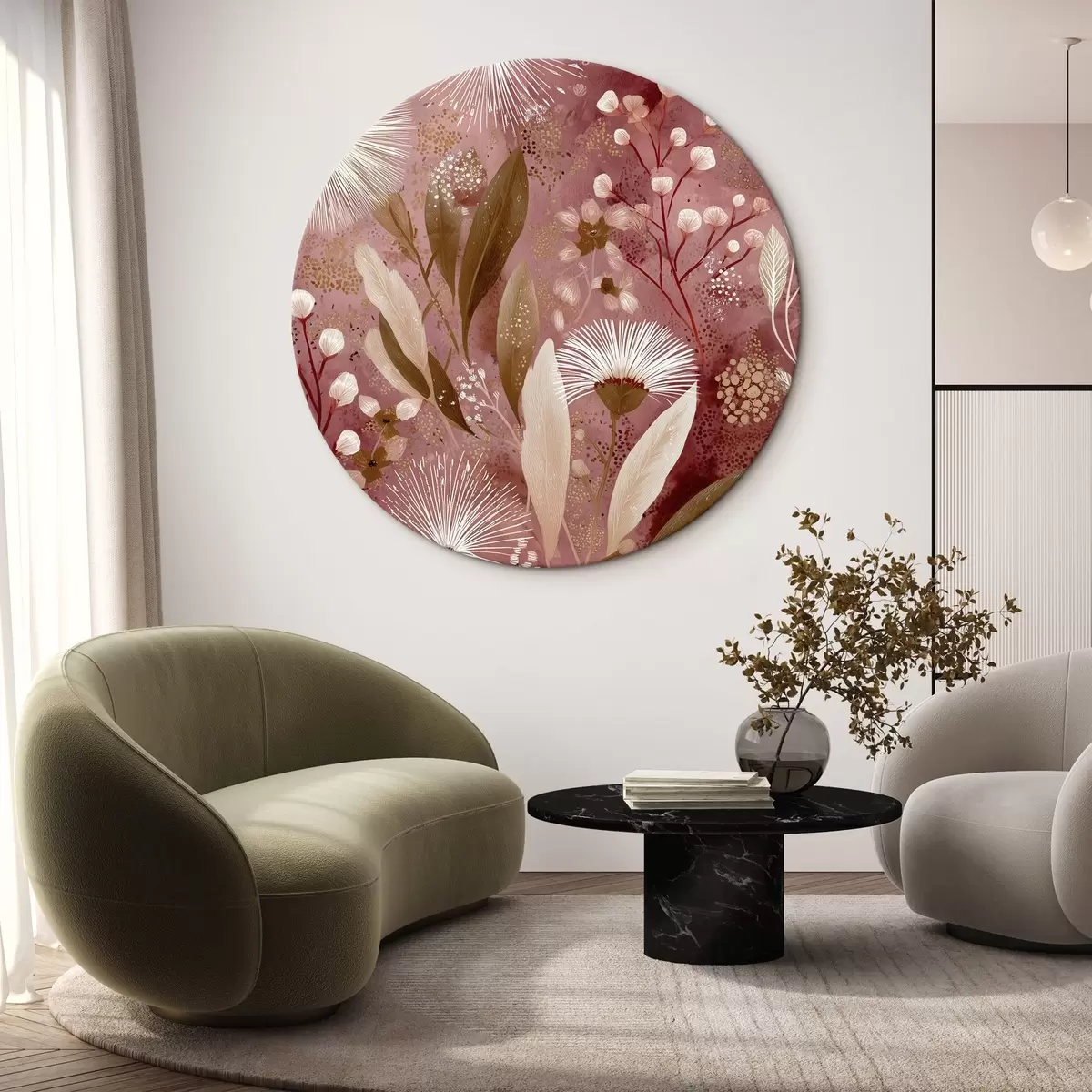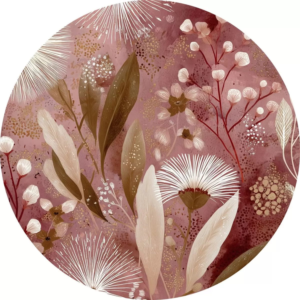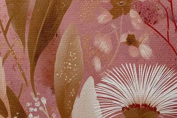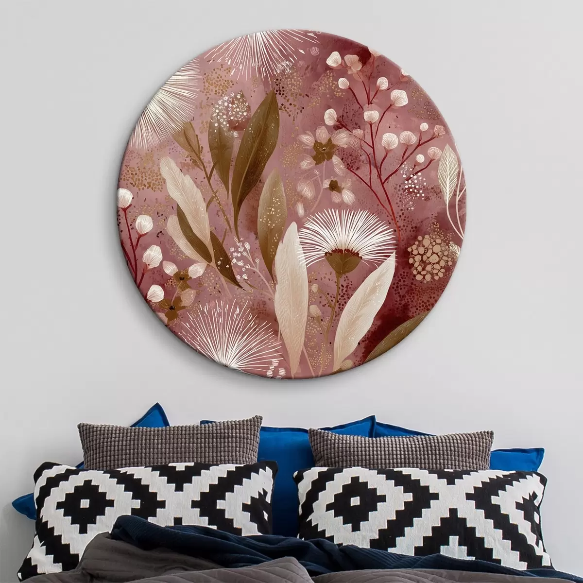 Pilt Boho stiilis valged lilled punasel taustal, detailne joonistus Nr r44979