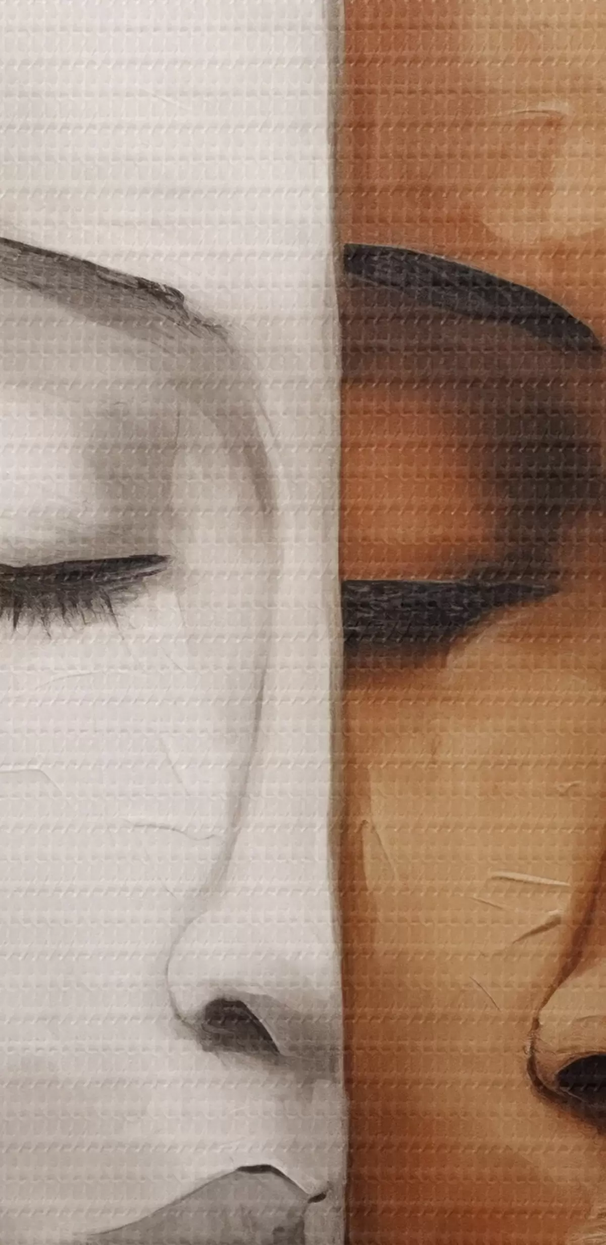 Selle lõuendi peenike niidipunus meenutab professionaalse kunstniku lõuendi pinda.