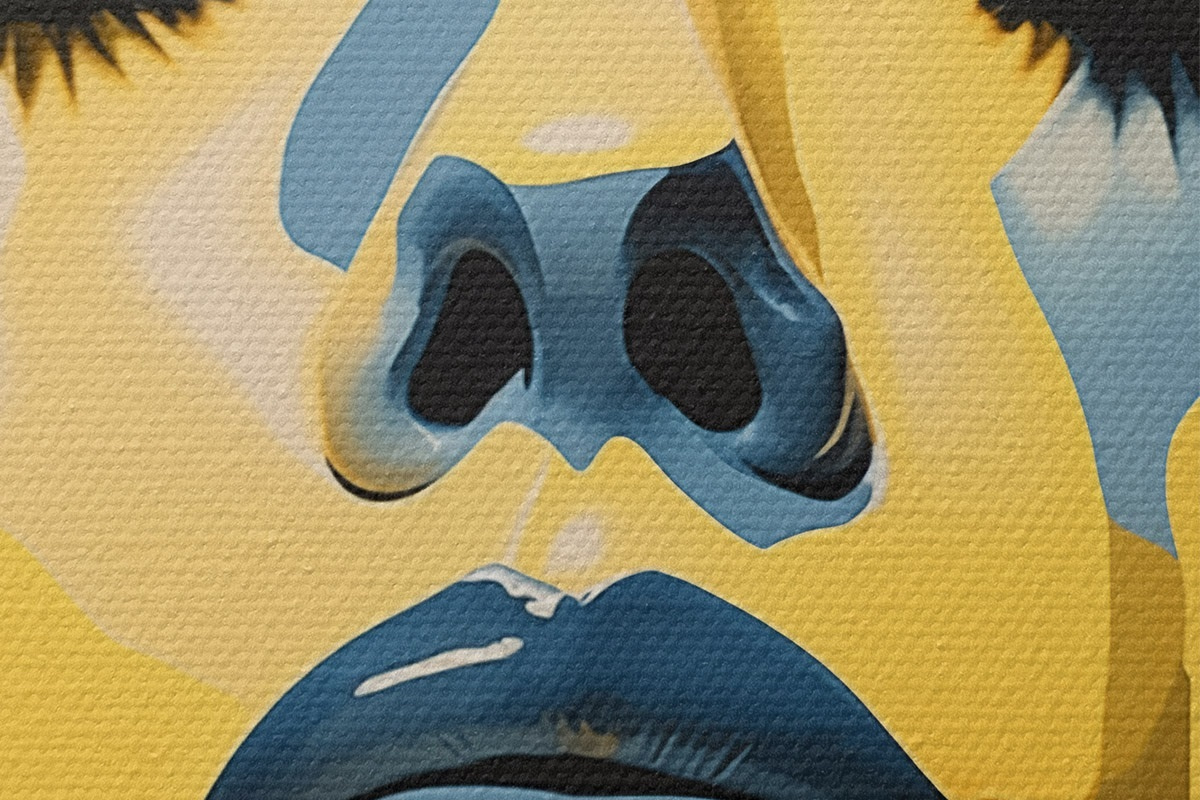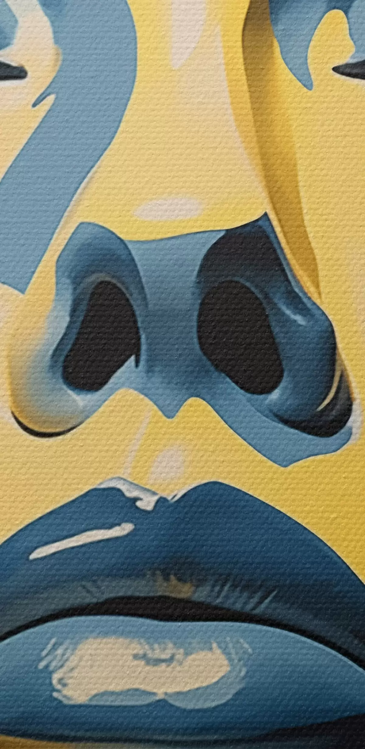 Selle lõuendi peenike niidipunus meenutab professionaalse kunstniku lõuendi pinda.