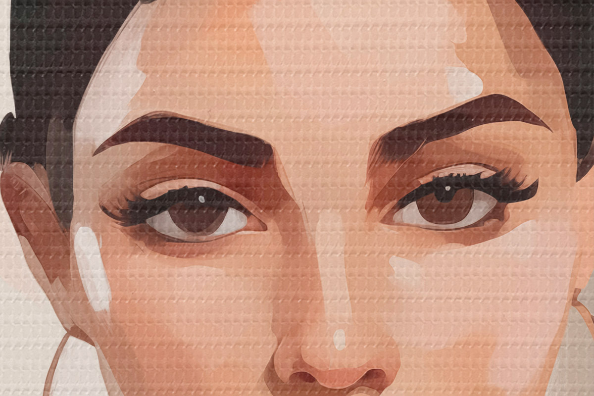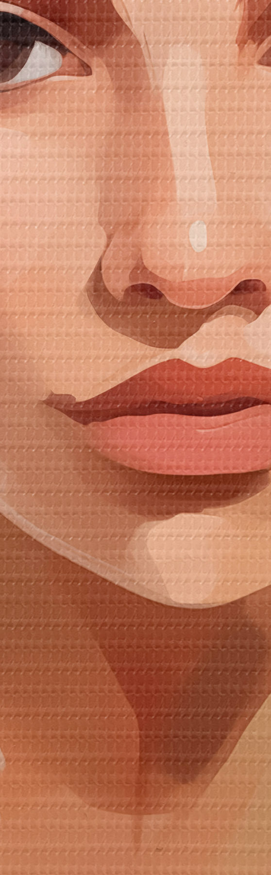Selle lõuendi peenike niidipunus meenutab professionaalse kunstniku lõuendi pinda.