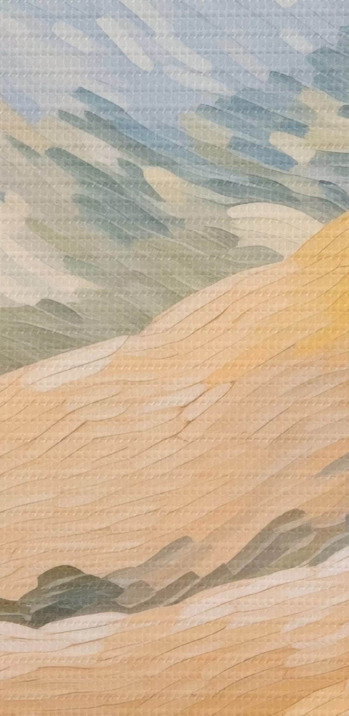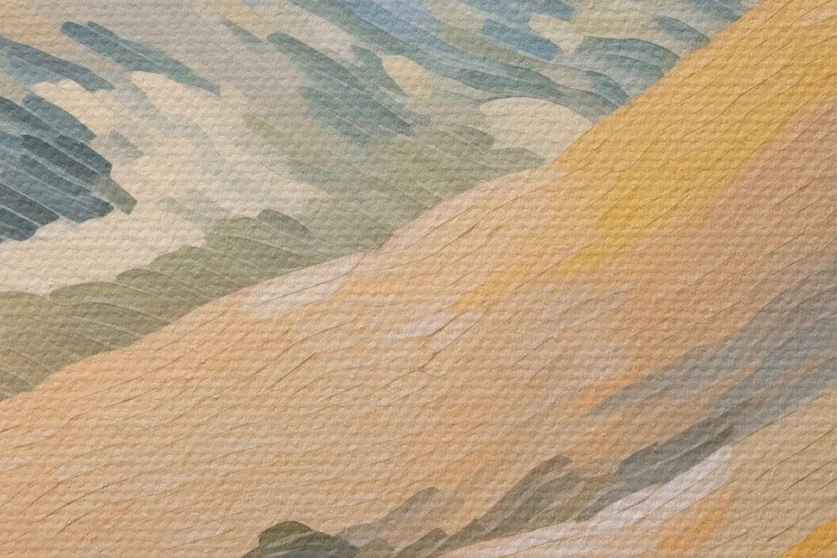 Selle lõuendi peenike niidipunus meenutab professionaalse kunstniku lõuendi pinda.