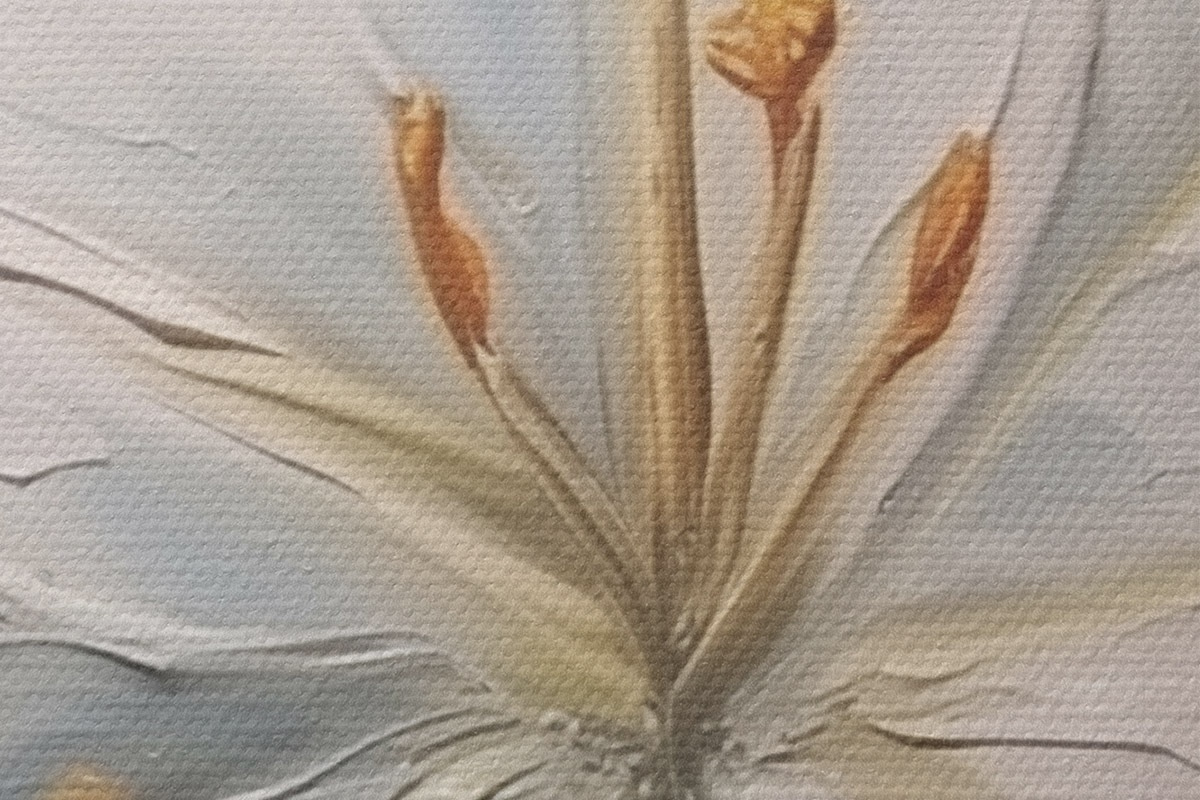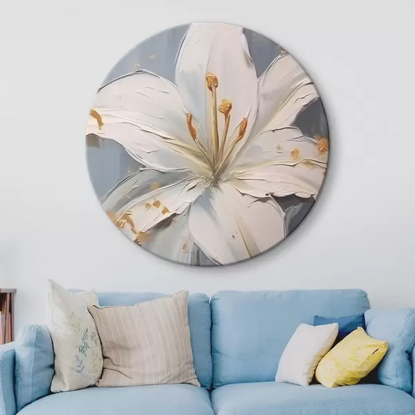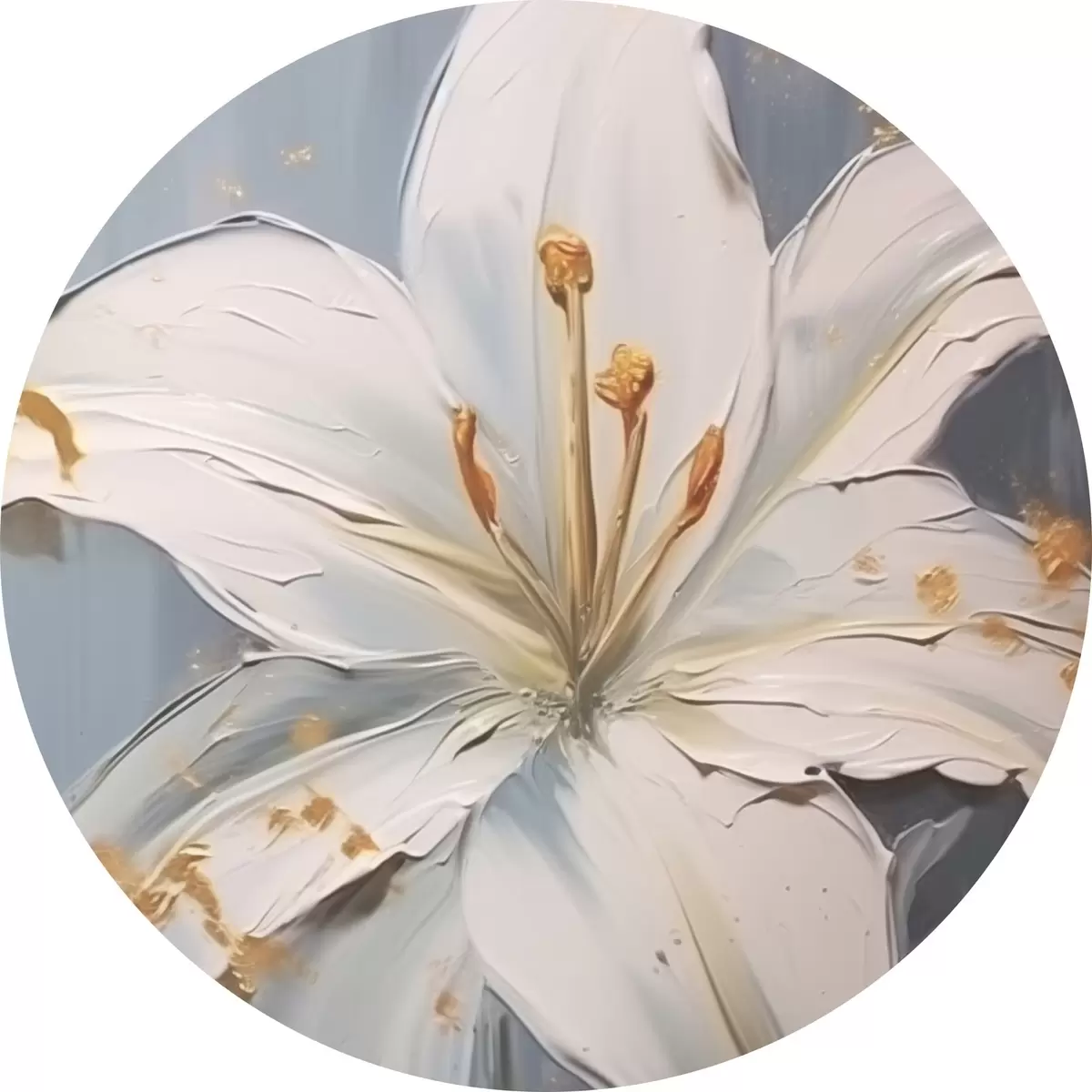 Pilt Valge liilia kollaste aktsentidega sinisel taustal Nr r45078