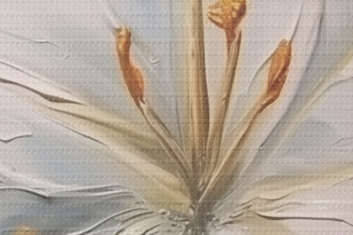 Selle lõuendi peenike niidipunus meenutab professionaalse kunstniku lõuendi pinda.