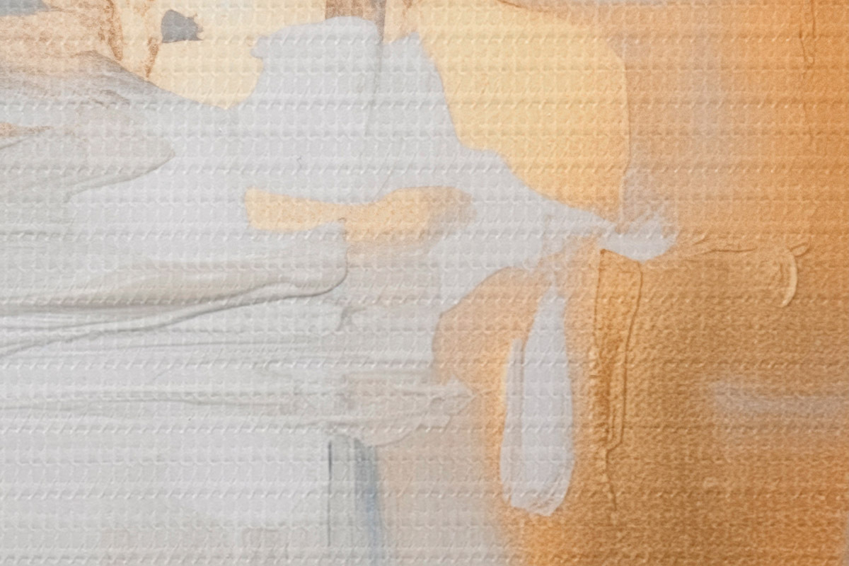 Selle lõuendi peenike niidipunus meenutab professionaalse kunstniku lõuendi pinda.