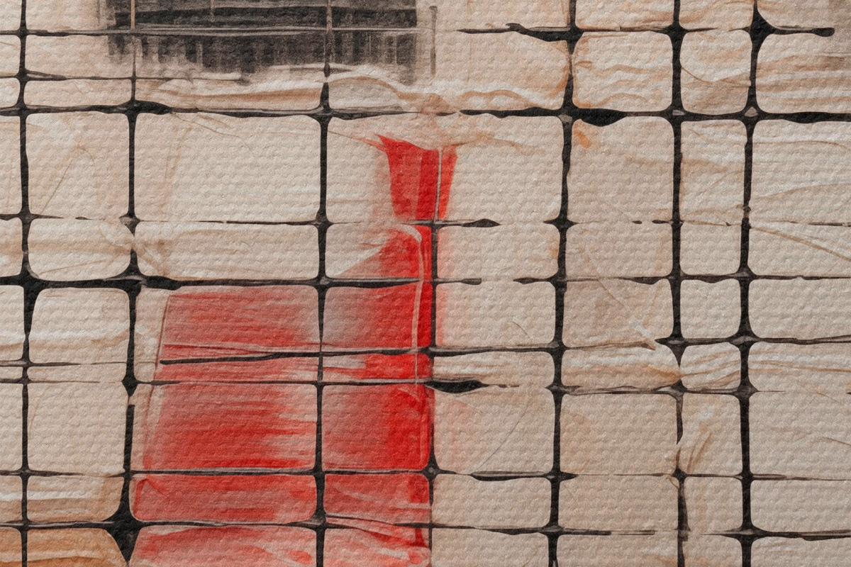 Selle lõuendi peenike niidipunus meenutab professionaalse kunstniku lõuendi pinda.