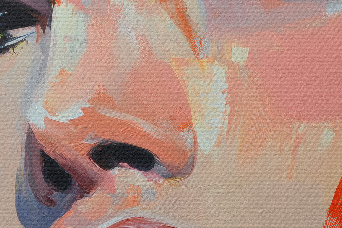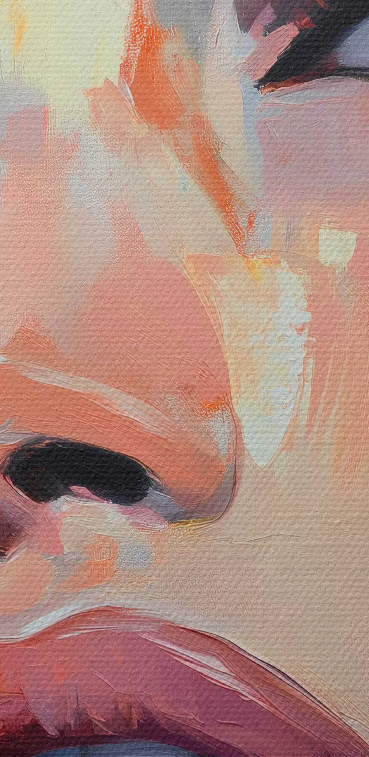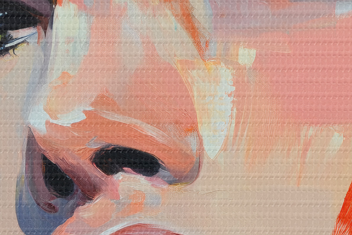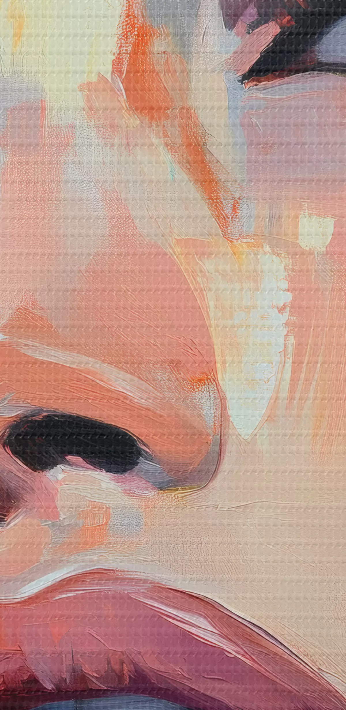 Selle lõuendi peenike niidipunus meenutab professionaalse kunstniku lõuendi pinda.
